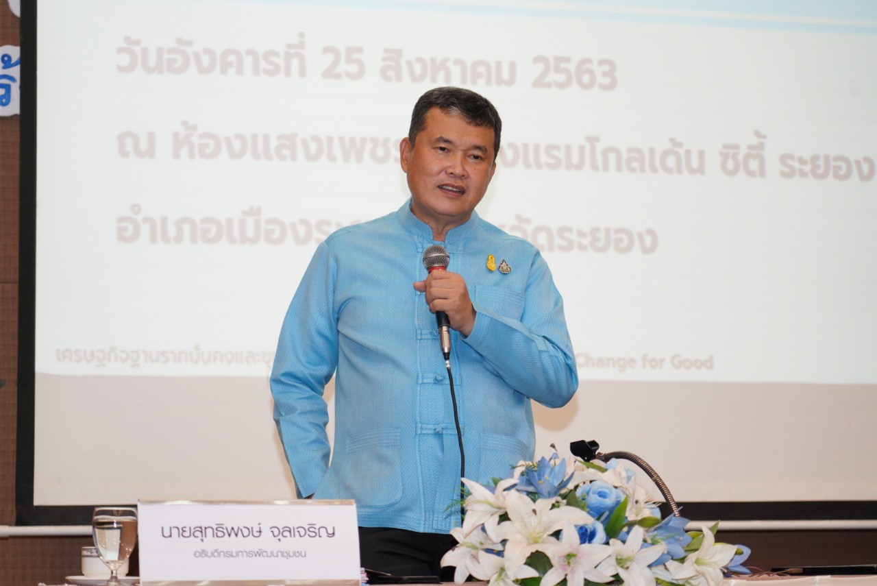 เมื่อวันที่ 25 ส.ค. นายสุทธิพงษ์ จุลเจริญ อธิบดีกรมการพัฒนาชุมชน(พช.)กระทรวงมหาดไทย มอบนโยบายการปฏิบัติราชการและบรรยายพิเศษในหัวข้อ "บทบาทของกรมการพัฒนาชุมชนกับการขับเคลื่อนเศรษฐกิจฐานราก"ตามนโยบายรัฐบาลและกระทรวงมหาดไทย โดยมี นายโชคชัย แก้วป่อง รองอธิบดีพช. พร้อมเจ้าหน้าที่พัฒนาชุมชนจังหวัดระยองจำนวน 50 คน ร่วมรับฟัง ณ โรงแรมโกลเด้น ซิตี้ ระยอง อ.เมืองระยอง จ.ระยอง