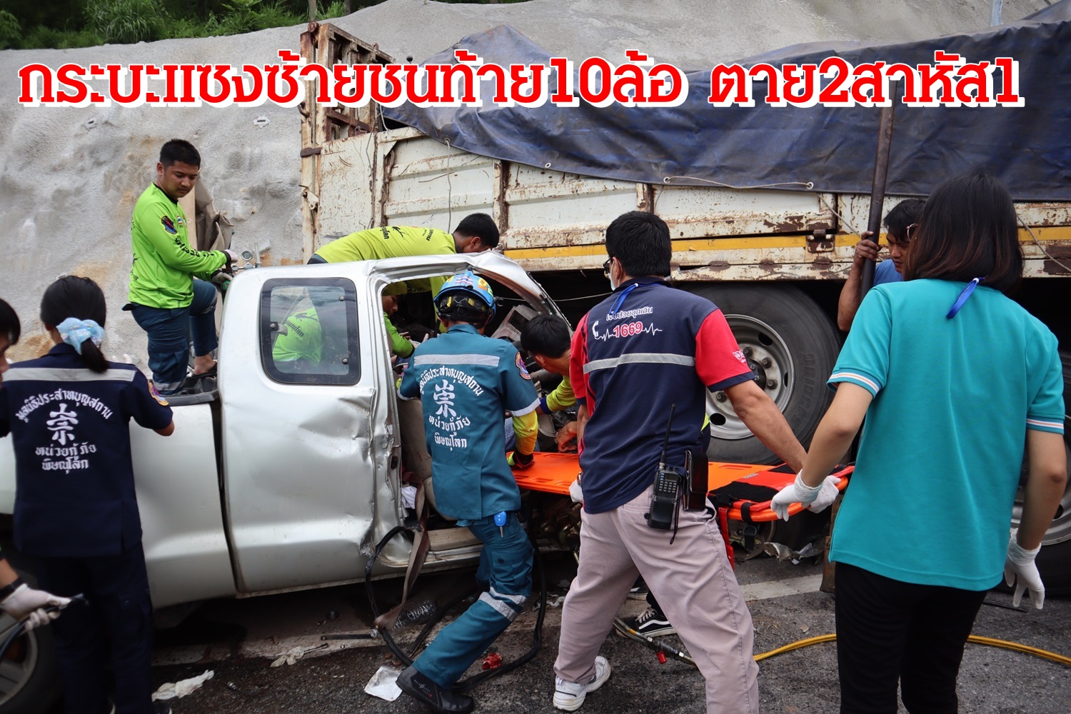 กระบะแซงซ้ายทางขึ้นเขาชนท้ายรถ10ล้อตาย2เจ็บสาหัส1
