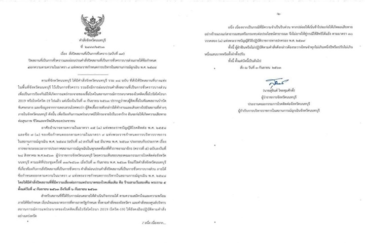 นนทบุรี-ผู้ว่าฯ สั่งปิดร้าน "3 วัน 2 คืน" หลังพบดีเจติดเชื้อโควิด-19 ให้พนักงานกักตัวเข้ากักตัวศูนย์ของรัฐ 14 วัน ครอบครัวหรือคนใกล้ชิดกักตัวอยู่บ้าน ลุยฉีดฆ่าเชื้อ พร้อมเตือนลูกค้าสังเกตอาการ