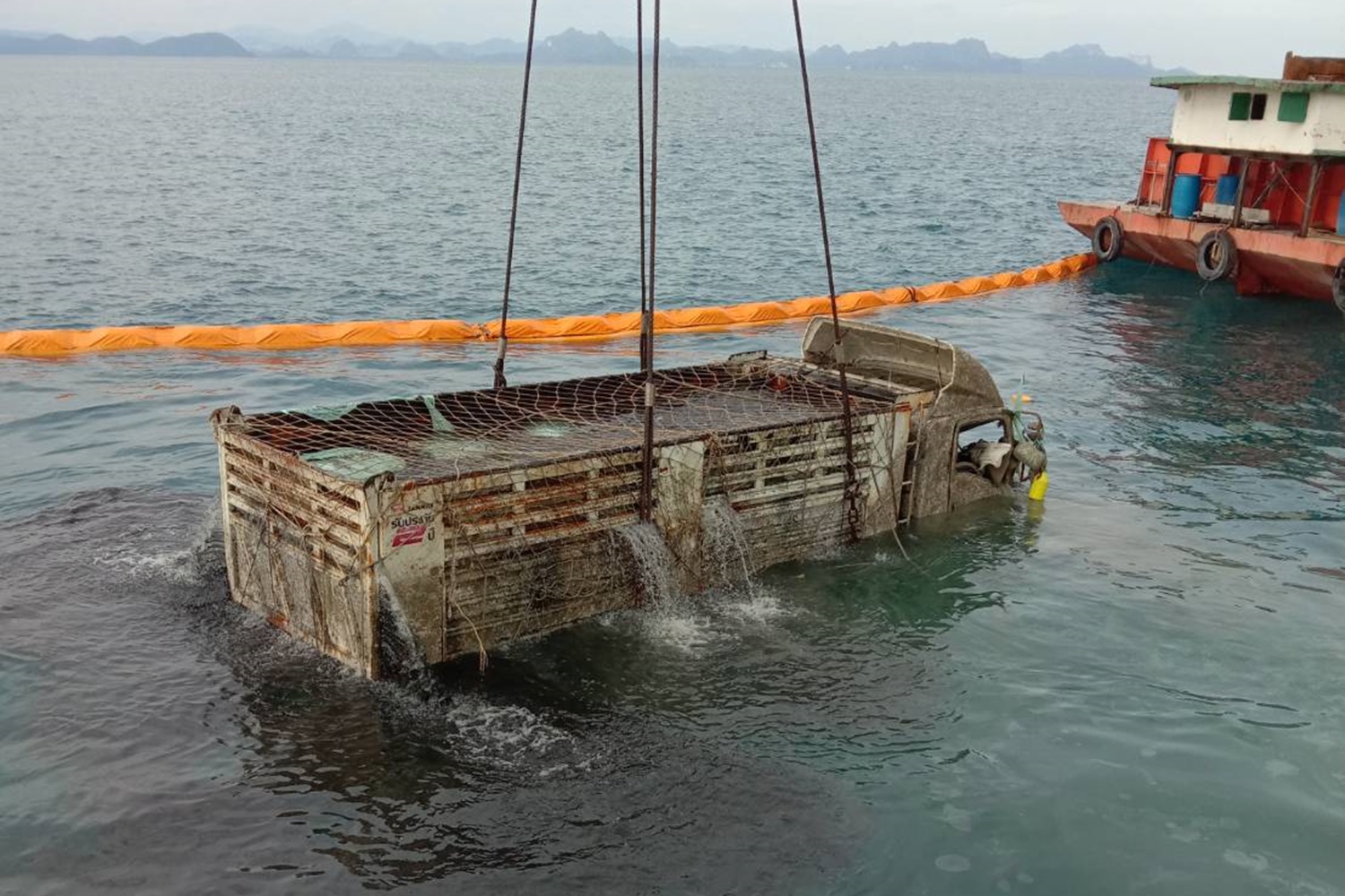 กู้เรือเฟอร์รี่ราชา4ล่มคืบ ยกรถบรรทุกขยะจมได้ครบ3คัน