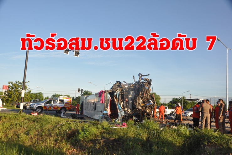สลด!ทัวร์คณะอสม.ร้อยเอ็ดจะไปพัทยาซิ่งชน 22 ล้อ ดับ 7 เจ็บ40 ราย