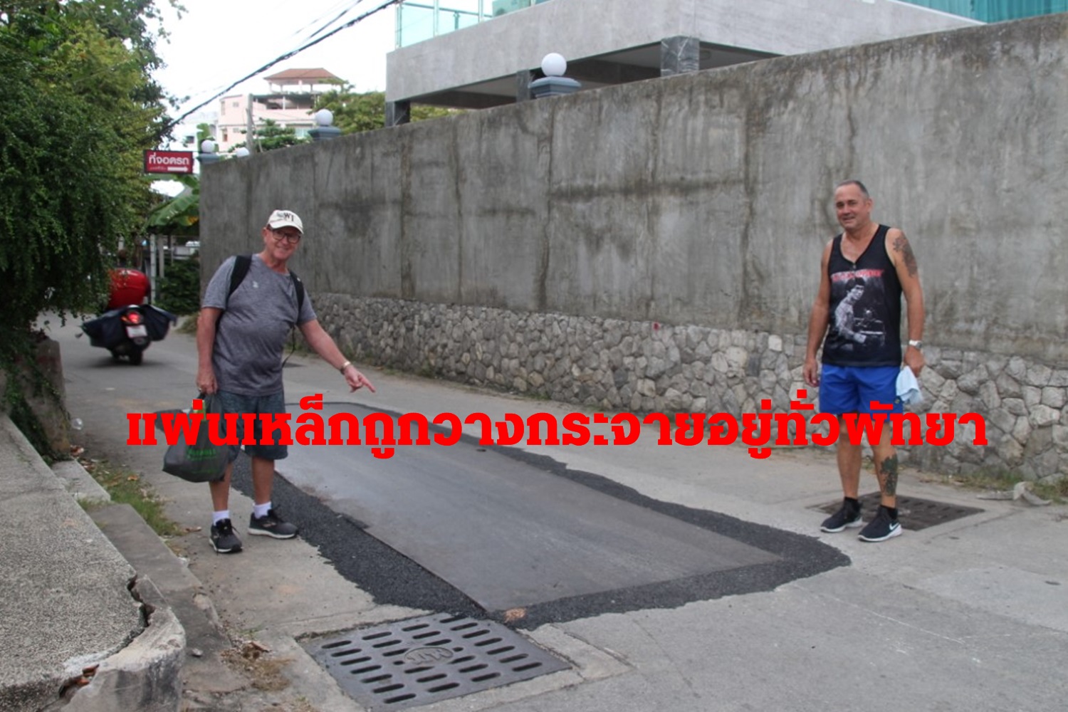 ฝรั่งอึ้ง!แผ่นเหล็กถูกวางกระจายอยู่ทั่วพัทยา