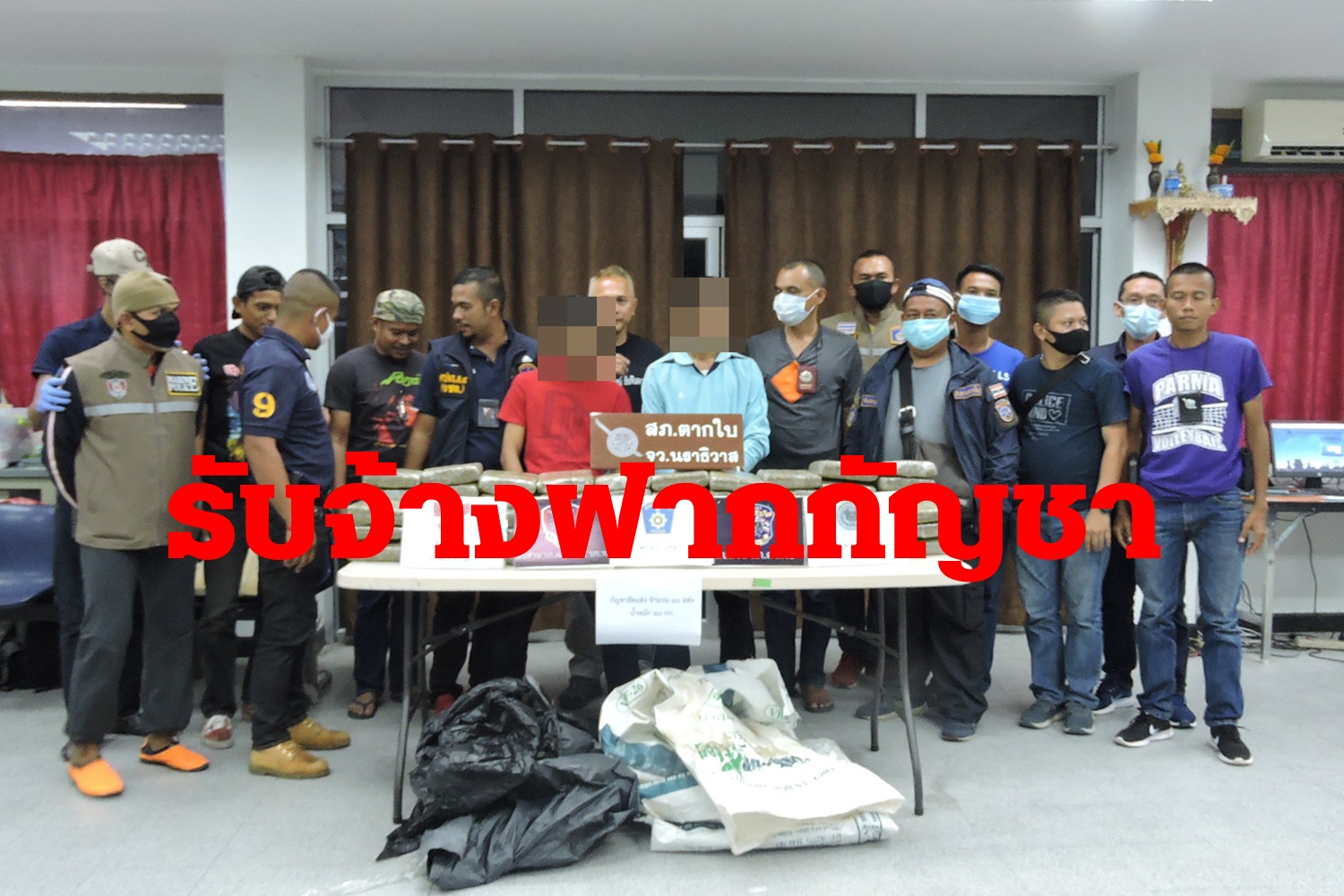 ที่สภ.ตากใบ จ.นราธิวาส เจ้าหน้าที่ตำรวจแถลงจับกุมแถลงจับกุม และนายมาหะมะสุไฮนิง และนายอับดุลนาอีม สองเป็นพี่น้องข้อหาร่วมกันมียาเสพติดให้โทษประเภท 5 (กัญชาแห้งอัดแท่ง) ไว้ในครอบครองเพื่อจำหน่ายโดยผิดกฎหมาย