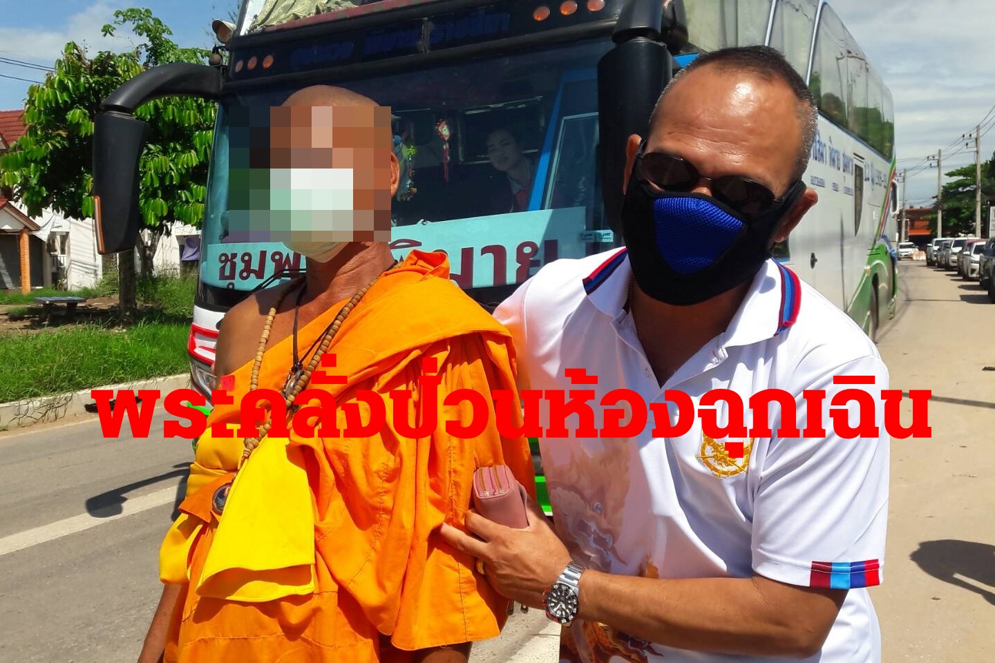 ต่อมาร.ต.อ.สุพรรณโรจน์ อิ่มวิเศษ รอง สวป.สภ.พิมายนำกำลังเจ้าหน้าที่เข้าไปตรวจสอบ คุมตัวพระรูปหนึ่งอายุราว50ปี กำลังพูดจาเอะอะโวยวายอยู่หน้าห้องฉุกเฉิน ระหว่างที่กำลังคุมตัวพระขึ้นรถตำรวจเพื่อนำไปส่งวัดต้นสังกัดที่บ้านตะบอง ต.โบสถ์ อ.พิมาย จ.นครราชสีมา รถบัสโดยสารได้วิ่งผ่านมา พระจึงรีบเดินเพื่อไปขึ้นรถโดยสาร
