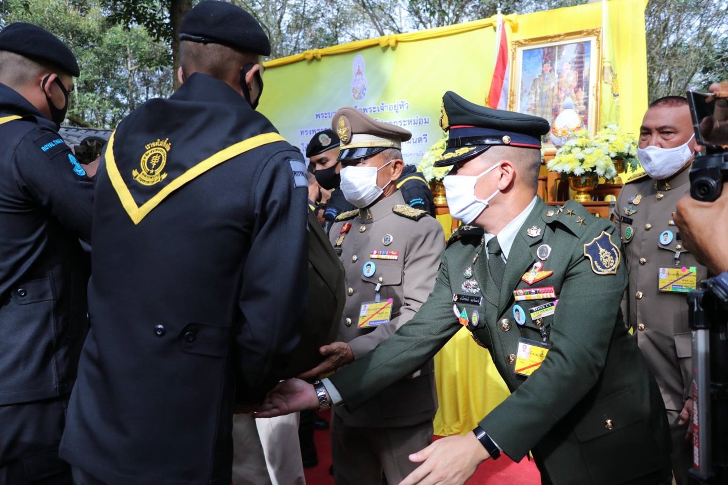 โอกาสนี้ พลเอก ไพบูลย์ คุ้มฉายา องคมนตรี เชิญสิ่งของพระราชทานมอบแก่เจ้าหน้าที่ที่ปฎิบัติหน้าที่ จำนวน 50 ชุด เพื่อเป็นขวัญและกำลังใจในการปฏิบัติหน้าที่ ทั้งนี้ เมื่อวันที่ 13 สิงหาคม พ.ศ. 2563 เวลาประมาณ 07.00 น. ได้มีคนร้ายลอบวางระเบิดเจ้าหน้าที่ทหารพราน หน่วยเฉพาะกิจกรมทหารพรานที่ 45 กองร้อยทหารพรานที่ 4508 ขณะปฏิบัติภารกิจ ลาดตระเวนเส้นทางรักษาความปลอดภัยครูโรงเรียนบ้านกาลิซา หมู่ที่ 2 ตำบลกาลิซา อำเภอระแงะ จังหวัดนราธิวาส ทำให้เจ้าหน้าที่ทหารพรานเสียชีวิต 1 นาย และได้รับบาดเจ็บ 3 นาย