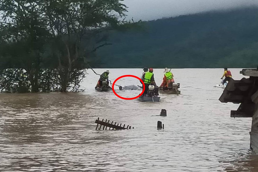 นครราชสีมา-เรือตำรวจทางหลวงพลิกคว่ำขณะลงพื้นที่ช่วยชาวบ้านประสบอุทกภัยท้ายเขื่อนลำพระเพลิงโชคดีสวมเสื้อชูชีพลุยแจกสิ่งของต่อ