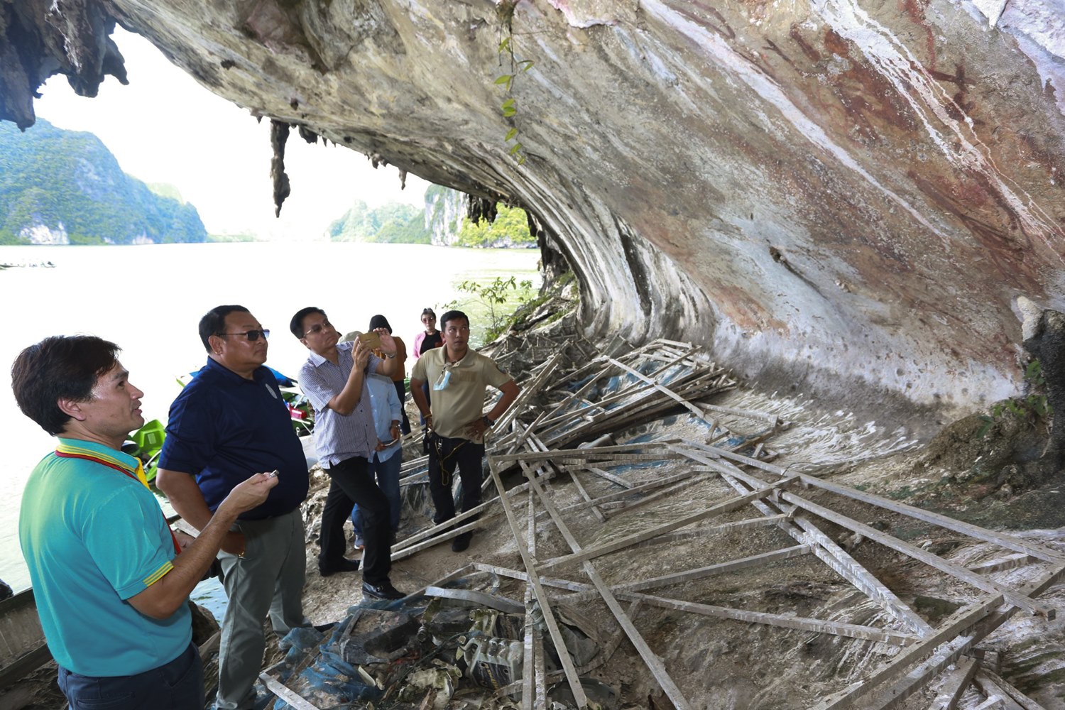 ทั้งนี้ ภาพเขียนสีตามเพิงผาหรือถ้ำบริเวณอ่าวพังงารวมไปถึงบริเวณฝั่งทะเลอันดามันทั้งหมดที่สำรวจพบแล้วมีกว่า 30 แห่ง เกือบทั้งหมดเป็นภาพที่เขียนขึ้นในยุคก่อนประวัติศาสตร์ ซึ่งผู้คนยังไม่มีตัวอักษรใช้สื่อสาร เรื่องราวภาพเขียนสีที่บันทึกจึงแสดงออกถึงวิถีชีวิต และการใช้พื้นที่ของผู้คนเมื่อราว 3,000– 5,000 ปีมาแล้ว เช่น ภาพบุคคล ภาพสัตว์ชนิดต่าง ๆ ทั้งสัตว์บกและสัตว์น้ำ ภาพลวดลายเรขาคณิต โดยมนุษย์ในอดีตสามารถใช้ถ้ำ และเพิงผาเป็นแหล่งพักพิงชั่วคราว ประกอบกิจกรรมหรือพิธีกรรมบางอย่าง หรือใช้พื้นที่เป็นแหล่งหลบลมมรสุมกระแสคลื่นลมในการเดินทางไปมาระหว่างแผ่นดินตอนใน และพื้นที่ชายฝั่งทะเล ที่มีการใช้เส้นทางตามลำน้ำและคลอง ลัดเลาะเชื่อมเข้าออกสู่ทะเล และอาศัยแหล่งอาหารตามธรรมชาติ จึงสามารถสะท้อนถึงกลุ่มคนผู้เขียนภาพเหล่านี้ว่ามีความเกี่ยวข้องกันอย่างใกล้ชิดอีกด้วย