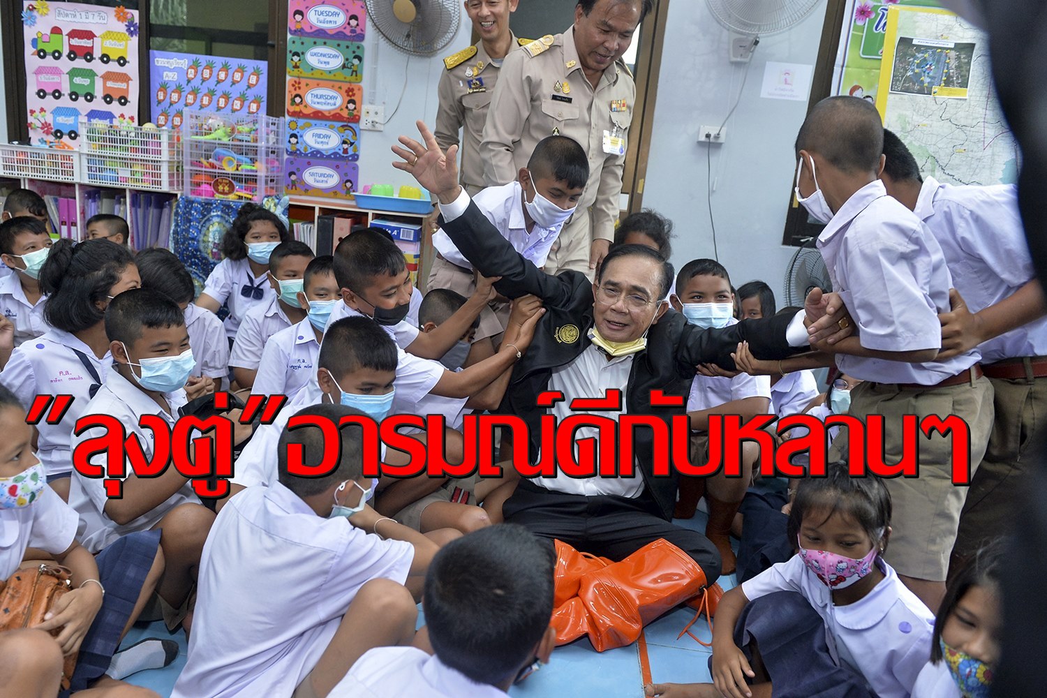"ลุงตู่"อารมณ์ดีท่ามกลางนร.เข้ามารุมล้อมขณะลงพื้นที่ตรวจน้ำท่วม