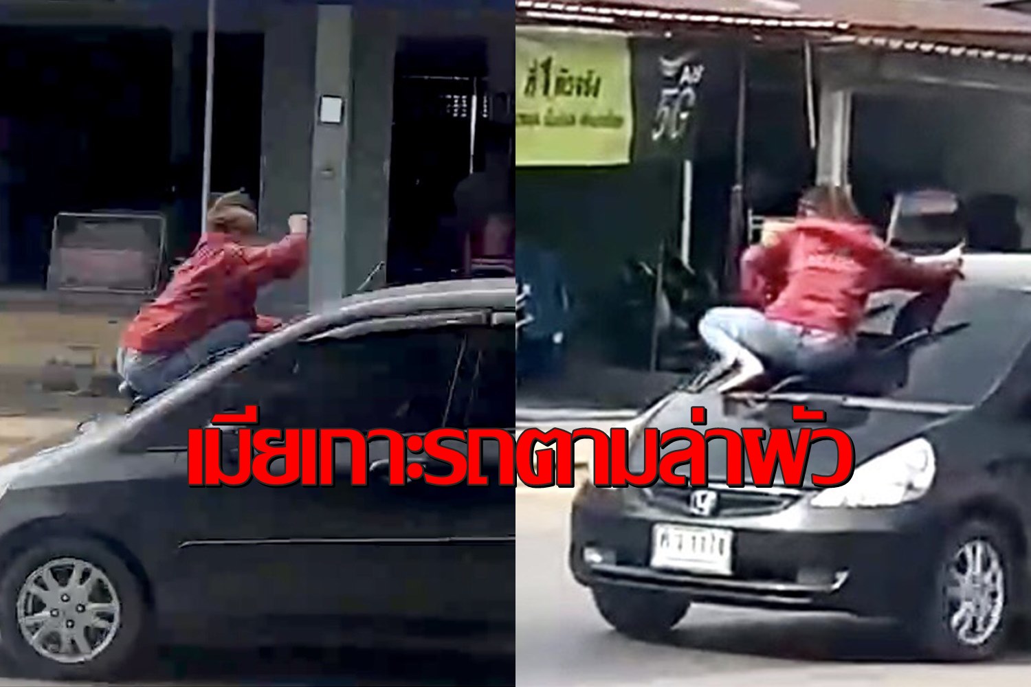 เหมือนในหนัง!เมียเกาะฝากระโปรงหน้ารถขอเคลียร์กับผัว