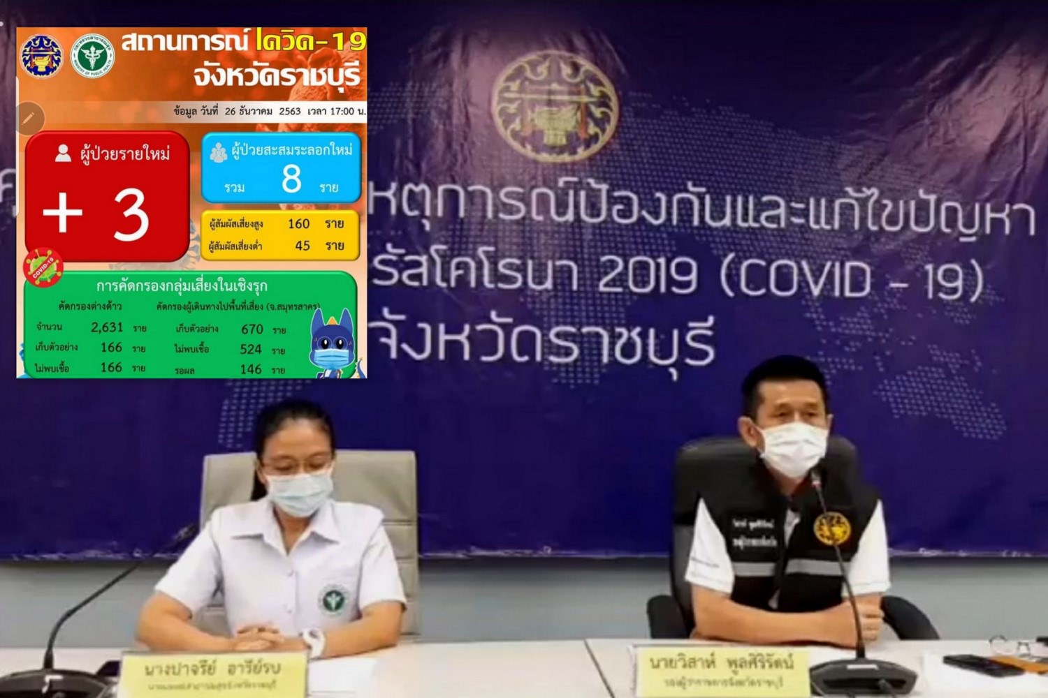 เมื่อวันที่ 26 ธันวาคม 2563 นายวิสาห์ พูลศิริรัตน์ รองผู้ว่าราชการจังหวัดราชบุรี เปิดเผยว่า จ.ราชบุรีพบมีผู้ติดเชื้อโควิดรายใหม่อีก 3 ราย เกี่ยวโยงกับผู้ติดเชื้อรายที่ 4 และ 5 รวมแล้วจ.ราชบุรีพบผู้ติดเชื้อสะสมทั้งหมด 8 ราย