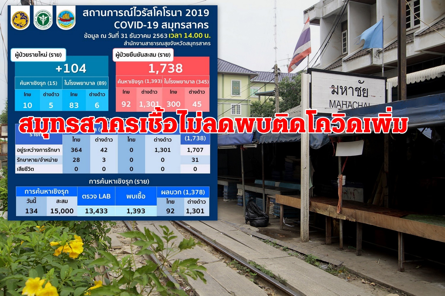 สมุทรสาครยังไม่ลด!ติดเชื้ออีก104 ยอดพุ่ง1,738 ราย