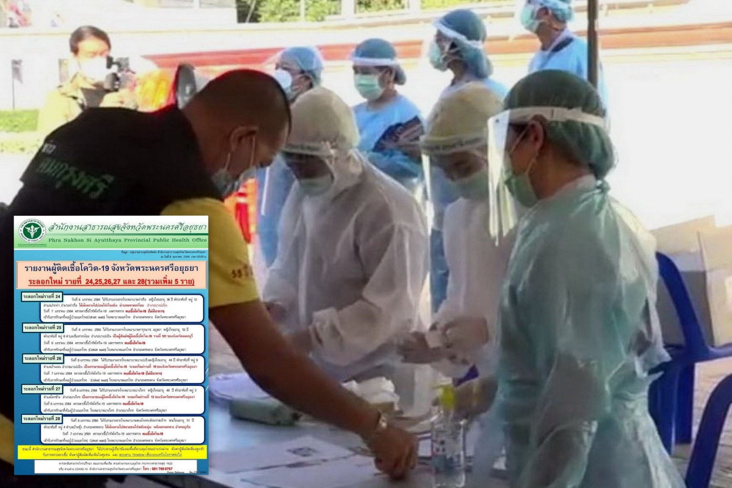 พระนครศรีอยุธยา-สจจ.อยุธยาพบผู้ป่วยติดเชื้อโควิด-19เพิ่มอีก 5 โยงบ่อนไก่ชนในพื้นที่อ.บางปะอินและอ.นครหลวง ยอดผู้ป่วยสะสมระบาดรอบใหม่ 28 คนแล้ว