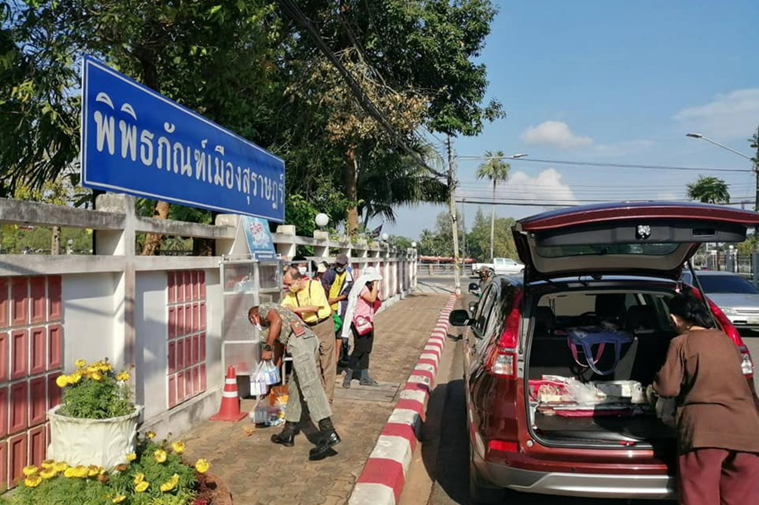 สุราษฎร์ธานี-ตู้ปันสุขช่วยเหยื่อโควิด กลับมาแล้ว คนสุราษฎร์ฯใจดีขับเก๋ง ขนข้าวสาร ปลากระป๋อง เติม2จุดหน้าจวนผู้ว่าฯและศูนย์ดำรงธรรม