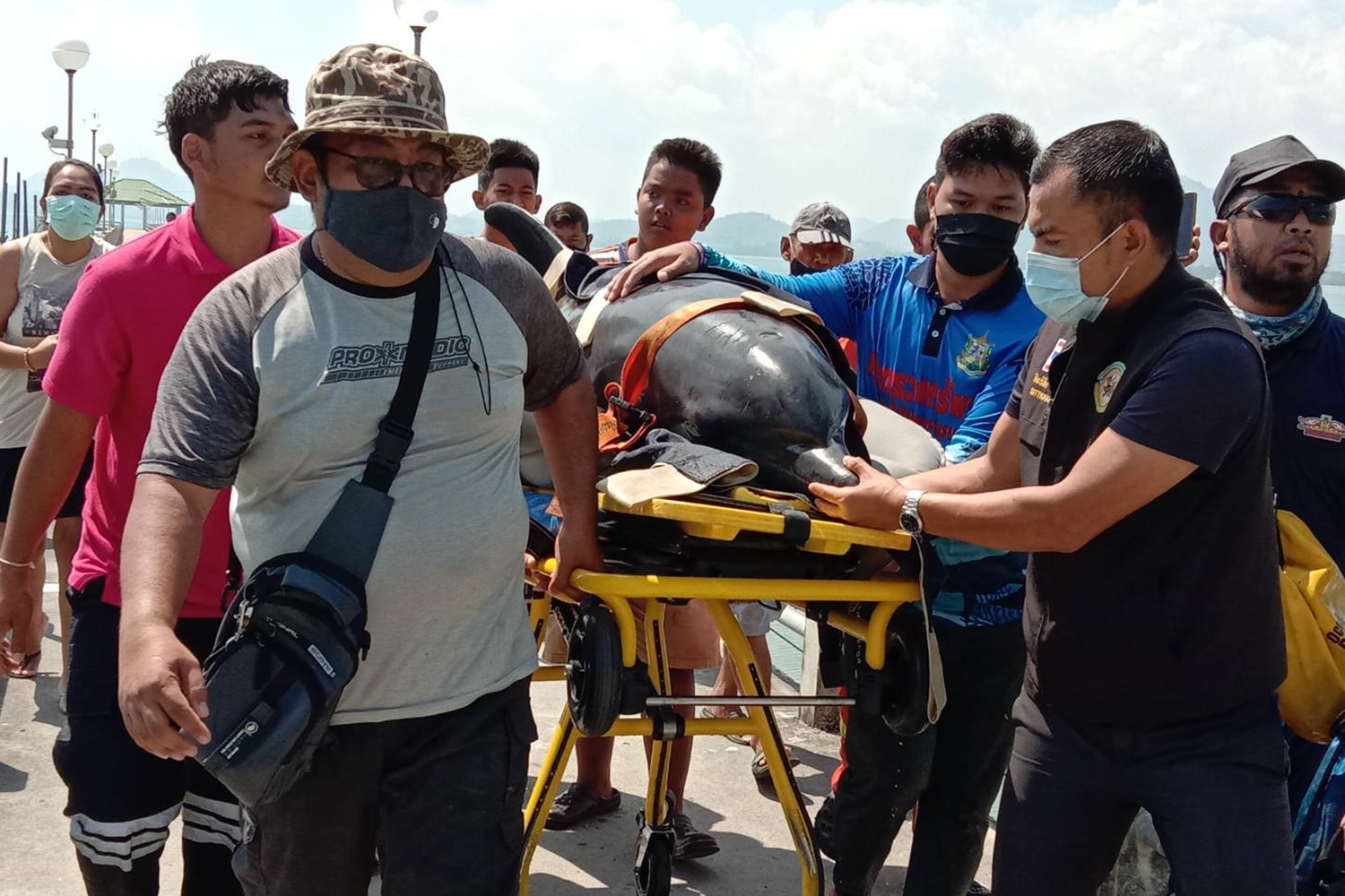 ภูเก็ต-พบโลมาเกยตื้นที่บ้านแหลมหิน เจ้าหน้าที่นำไปศูนย์ช่วยชีวิตสัตว์ทะเลหายากสิรีธารตรวจความแข็งแรงก่อนปล่อยลงทะเลอันดามัน