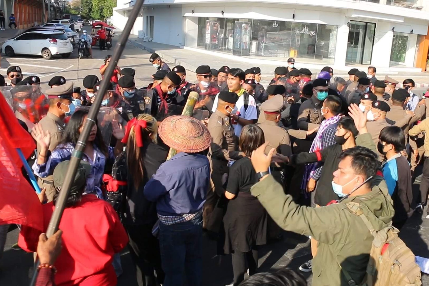 การ์ดวีโว่อีสานปะทะตำรวจคุมฝูงชนก่อนเดินขบวนขอนแก่น