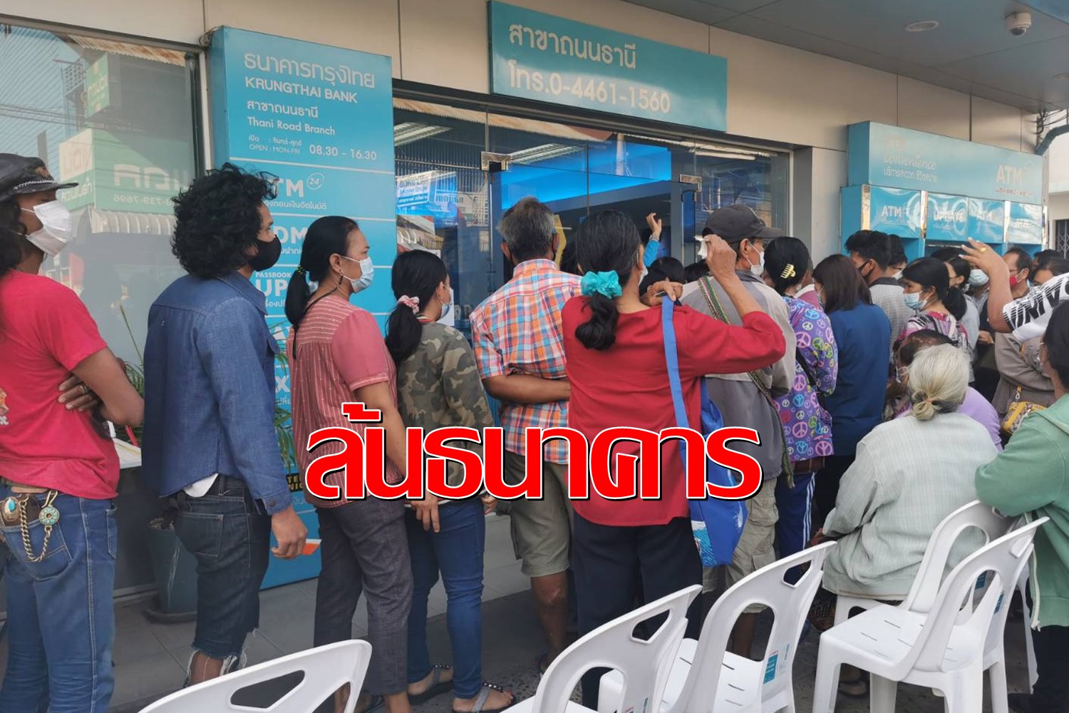 ผู้สูงอายุแน่นหน้าธนาคารเข้าคิดรอลงทะเบียนรับเงิน"เราชนะ"