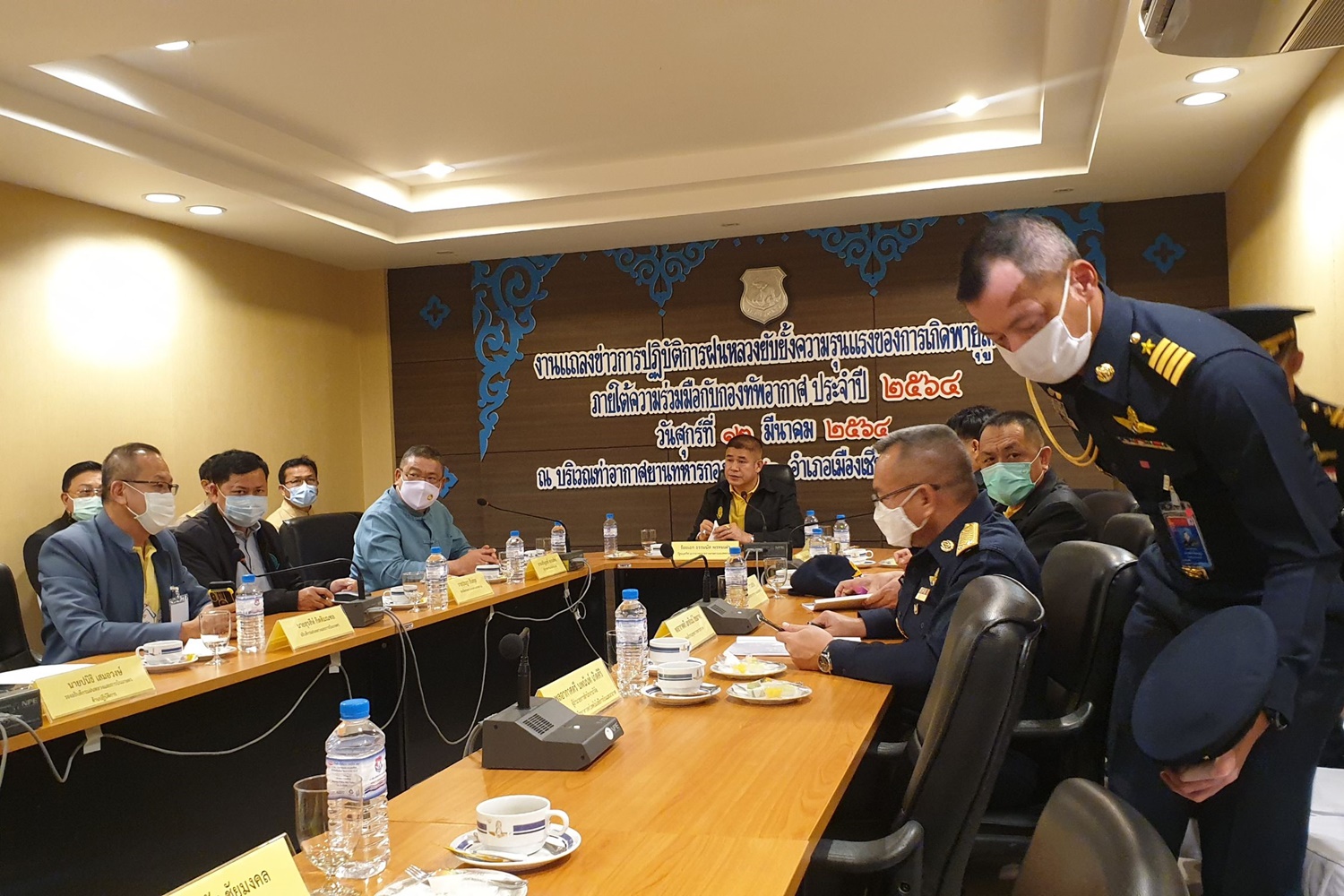 ร้อยเอกธรรมนัส พรหมเผ่า รัฐมนตรีช่วยว่าการกระทรวงเกษตรและสหกรณ์ พร้อมคณะเดินทางลงพื้นที่จังหวัดเชียงใหม่ตรวจเยี่ยมการปฏิบัติการฝนหลวงยับยั้งความรุนแรงของการเกิดพายุลูกเห็บ และการบรรเทาปัญหาหมอกควันไฟป่า ภายใต้ความร่วมมือกับกองทัพอากาศ ประจำปี 2564 พร้อมมอบนโยบายและพร้อมให้กำลังใจเจ้าหน้าที่ผู้ปฏิบัติงาน ณ ท่าอากาศยานทหารกองบิน 41 อำเภอเมือง