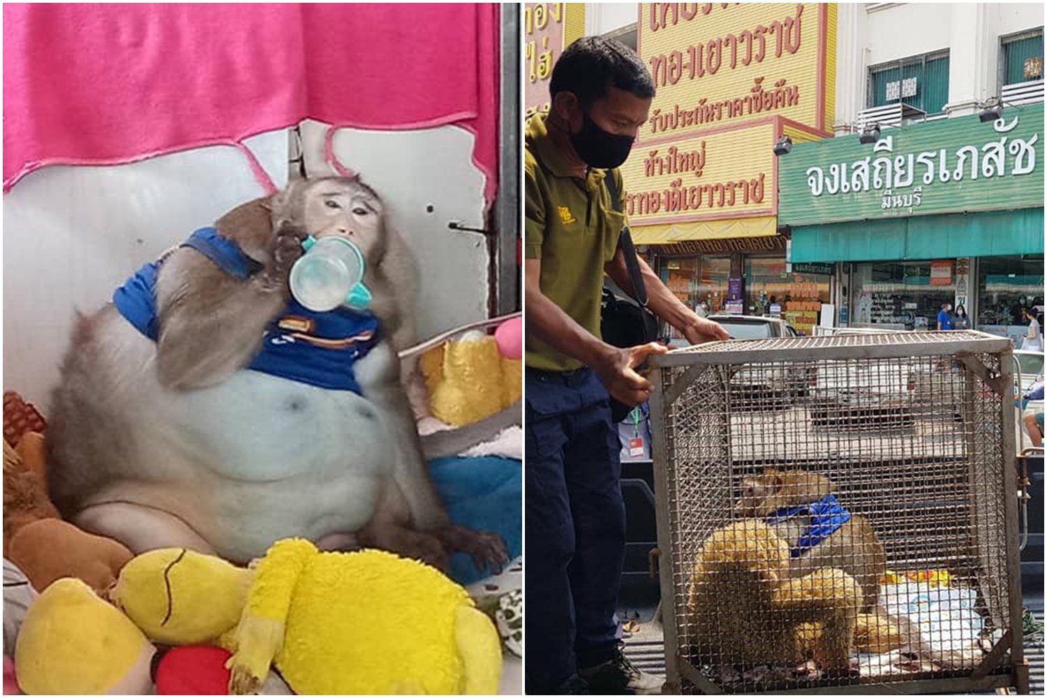เจ้าของส่งมอบ "ก๊อตซิล่า" ลิงอ้วนในตลาดมีนบุรี ให้เจ้าหน้าที่กรมอุทยานไปดูแล หลังอ้วนเกินมาตรฐาน เจ้าของเผยรักเหมือนลูก นำมาเลี้ยงหลังพ่อแม่ลิงถูกรถชนตาย