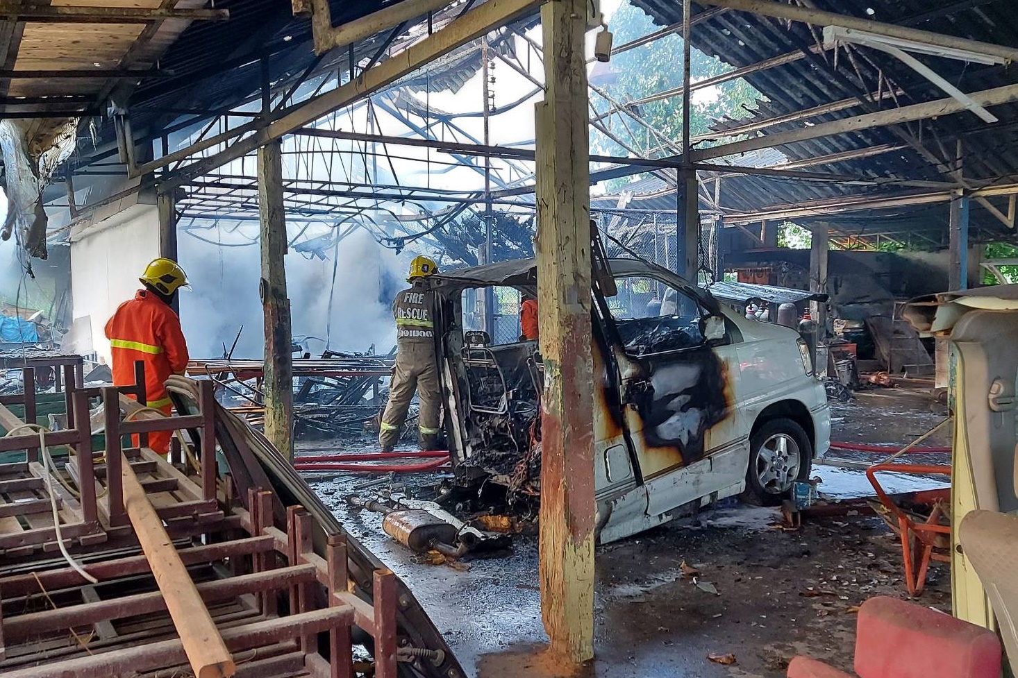 นครราชสีมา-หม้อแปลงระเบิดเกิดไฟไหม้อู่ซ่อมรถยนต์กลางเมืองโคราชราว30นาทีเพลิงสงบ ค่าเสียหายไม่ต่ำกว่า3ล้านบาท