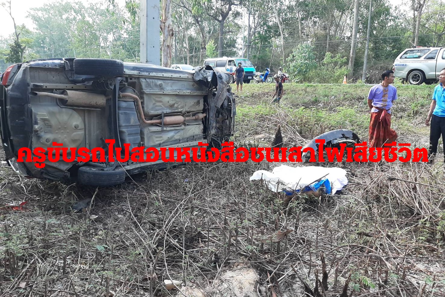 สลด!ครูหญิงขับรถไปสอนหนังสือชนต้นไม้เสียชีวิตลูกสองคนรอด