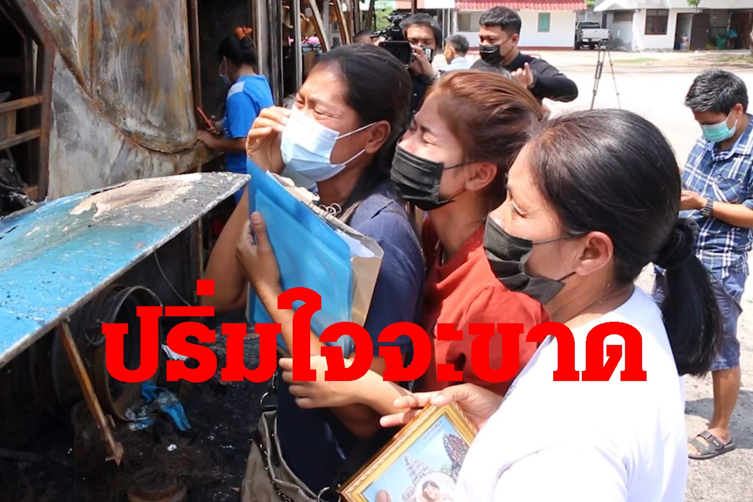 ขอนแก่น-ญาติเหยื่อร้องไห้ปริ่มใจจะขาดเห็นซากรถทัวร์ไฟไหม้วอดดับ5บาดเจ็บ12 เรียกชื่อผู้เสียชีวิตกลับบ้านตามความเชื่อไปประกอบพิธีทางศาสนา