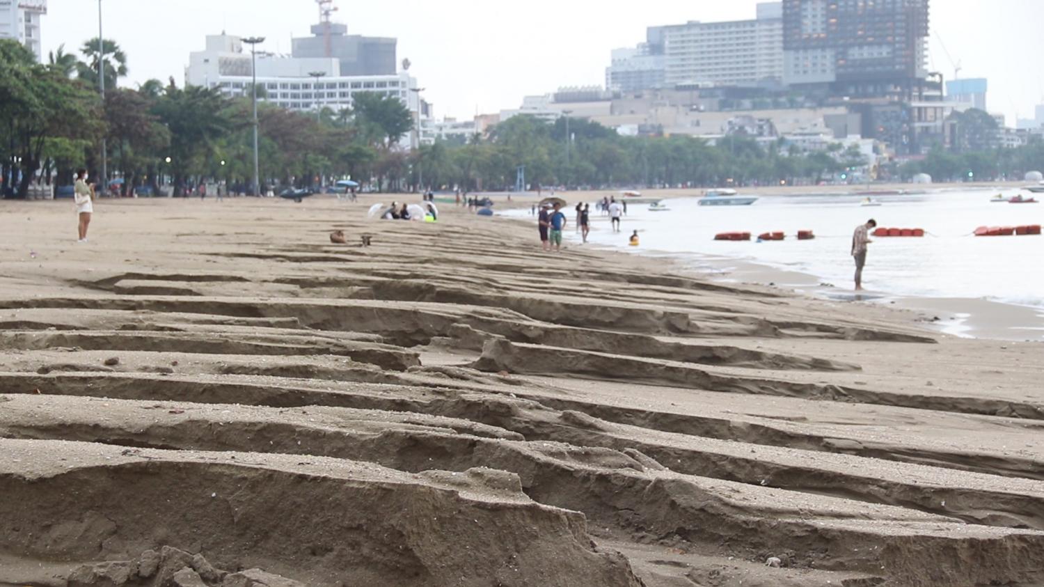 จากกรณีเกิดพายุฝนตกลงมาอย่างหนักในช่วงบ่ายของวันที่ 11 เมษายนที่ผ่านมาในพื้นที่เมืองพัทยา อ.บางละมุง จ.ชลบุรี เป็นเวลานานกว่า 3 ชั่วโมง ทำให้เกิดมวลน้ำจำนวนมากไหลบ่ามาจากฝั่งตะวันออกเข้าสู่พื้นที่เมืองพัทยา ก่อให้เกิดปัญหาน้ำท่วมขังหลายจุด ขณะที่บริเวณชายหาดพัทยา ตั้งแต่พัทยาเหนือไปจนถึงพัทยาใต้ได้รับผลกระทบอย่างหนักเนื่องจากมวลน้ำไหลบ่าลงสู่ชายหาด ส่งผลให้หาดทรายถูกน้ำกัดเซาะทรายไหลลงสู่ทะเลเป็นหลุม และทางน้ำไหลขนาดใหญ่ ได้รับความเสียหายเป็นอย่างมาก โดยพบว่าทรายถูกน้ำเซาะลงทะเลไปนับแสน ลบ.ม.นายสนธยา คุณปลื้ม นายกเมืองพัทยา ได้เร่งสั่งการให้เจ้าหน้าที่สำนักช่างเมืองพัทยา นำเครื่องมือหนักพร้อมบุคลากรเข้ามาทำการซ่อมแซมชายหาดพัทยาเป็นการเร่งด่วนเพื่อให้ชายหาดกลับคืนมาสภาพดังเดิม