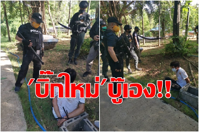 กาญจนบุรี-รองผบ.ตร.พร้อมอาวุธครบมือนำกำลังตำรวจลุยจับคนร้ายยิงตำรวจทางหลวงบาดเจ็บด้วยตัวเองจับได้คารีสอร์ตในอ.ไทรโยก