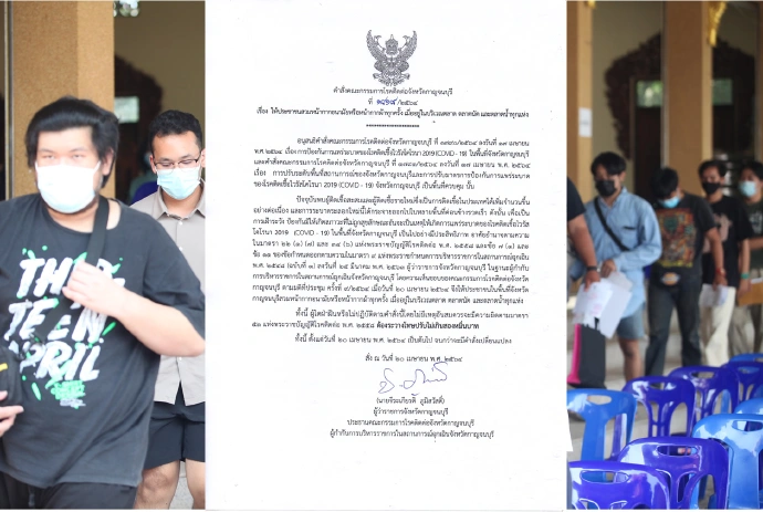 กาญจนบุรี-ผู้ว่าฯเมืองกาญจน์ออกคำสั่งให้ประชาชนสวมหน้ากากอนามัยทุกครั้งเมื่ออยู่ในบริเวณตลาดทุกแห่ง ฝ่าฝืนมีความผิดปรับไม่เกิน 2 หมื่นสกัดโควิดแพร่กระจาย