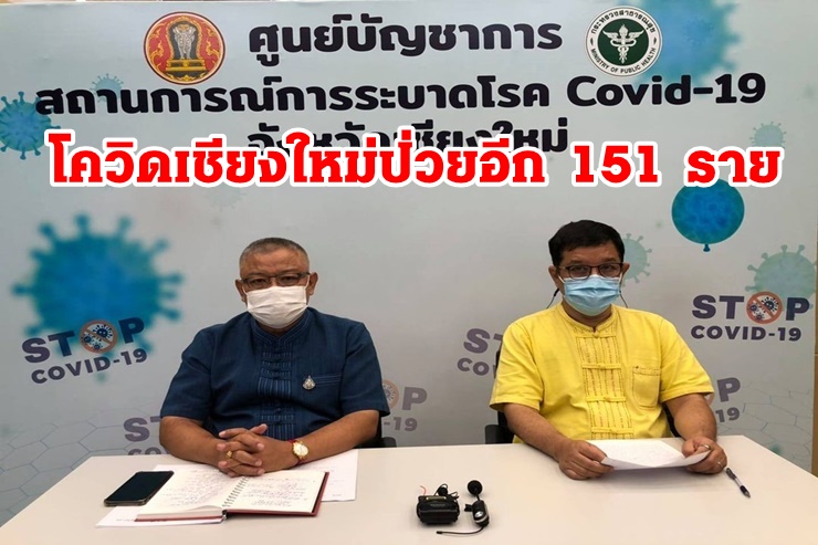 เชียงใหม่ - รายงานพบยอดติดเชื้อโควิด-19 อีก 151 ราย เจอคลัสเตอร์ใหม่เพิ่มขึ้นอีก 3 กลุ่ม ทั้งสถานที่ทำงาน - งานศพและบริษัทขายตรงจัดงานเลี้ยง พบผู้ติดเชื้อรวมแล้วกว่า40ราย และผู้สัมผัสเสี่ยงอีกกว่า200ราย
