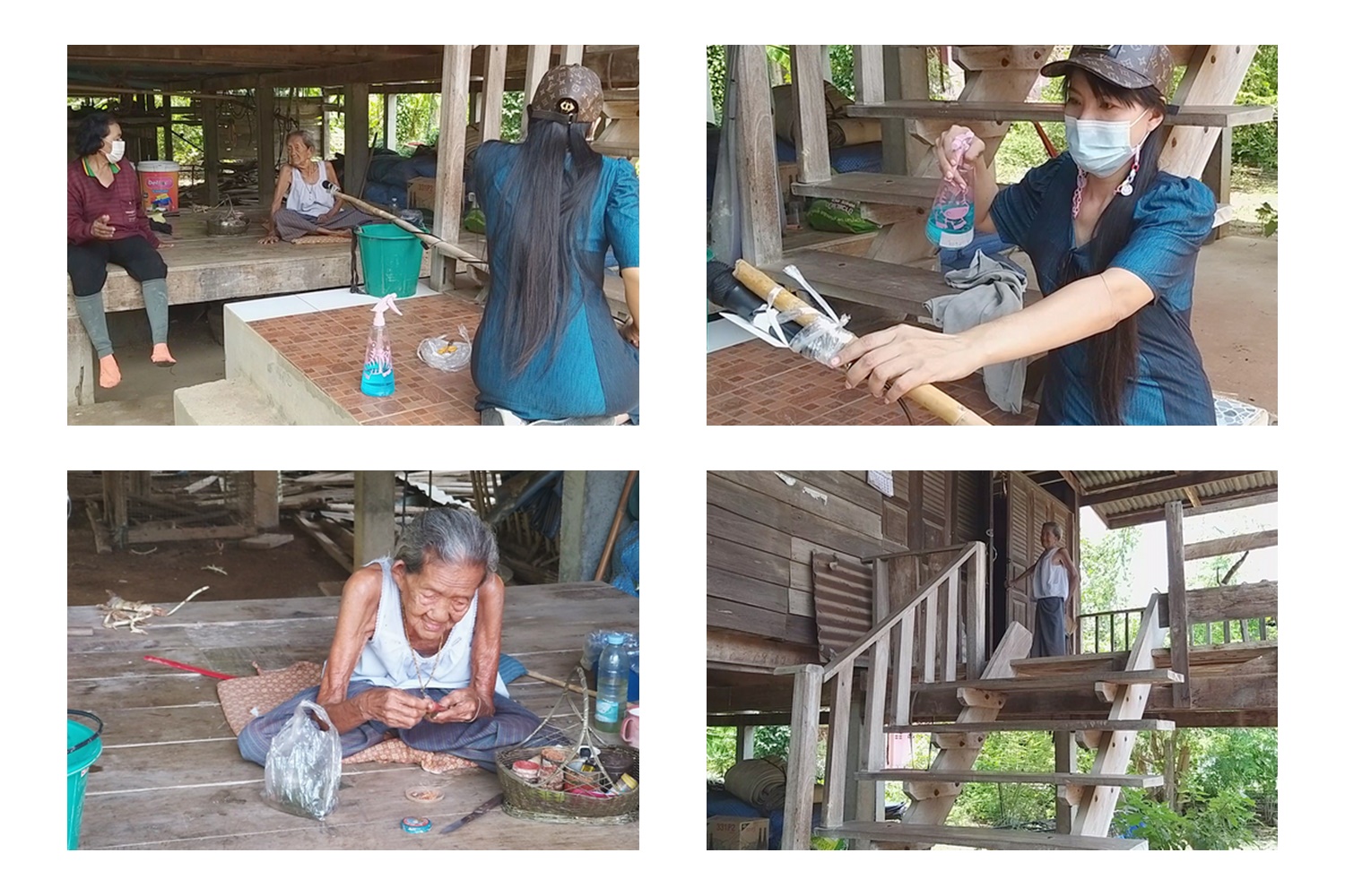 อย่างไรก็ตาม เพื่อความปลอดภัยในการทำข่าวครั้งนี้ นอกจากจะสวมใส่แมสก์ และเว้นระยะห่างในการพูดคุยกันแล้ว ผู้สื่อข่าวยังได้ใช้ไม้สอยมะม่วงที่ยาวเกือบ 4 เมตร ในบ้านของคุณยายสนิท มาดัดแปลงทำเป็นขาไมค์ โดยใช้เชือกฟางมัดไมค์ไว้ตรงปลายไม้ไผ่ พร้อมฉีดสเปรย์แอลกอฮอล์ฆ่าเชื้อโรค ก่อนจะยื่นไมค์ไปสัมภาษณ์คุณยายทวด 5 แผ่นดิน เป็นการเว้นระยะห่างเพื่อความปลอดภัยด้วย