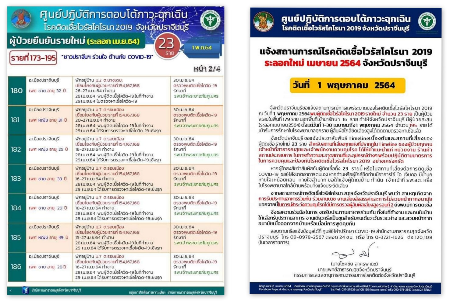 เมื่อวันที่1พ.ค.64 นายโชคชัย สาครพานิช นายแพทย์สาธารณสุขจังหวัดปราจีนบุรี เปิดเผยว่า สถานการณ์โควิด-19ระบาด พบผู้ติดเชื้อ ระลอก เมษายน 2564 เพิ่ม จำนวน 23 ราย สะสมรวม 195 ราย รักษาอยู่โรงพยาบาล 156 ราย รักษาหายกลับบ้านแล้ว 39 ราย ผู้ติดเชื้อ จำนวน 23 รายในรายที่ 172 -195 เป็นผู้ป่วยติดเชื้อจากโรงน้ำแข็ง ขณะนี้มีการตัวอย่างน้ำแข็งตรวจวิเคราะห์หาสารพันธุ์กรรมไวรัสโควิด19 ที่ห้องปฏิบัติการ กรมวิทยาศาสตร์การแพทย์ กระทรวงสาธารณสุขและอายัดน้ำแข็งในห้องเย็นไม่ให้มาจำหน่ายและรอทำลาย ประสานพยาลบาลเฉพาะทางด้านการควบคุมและป้องกันการติดเชื้อทำความสะอาดฆ่าเชื้ออุปกรณ์ที่ใช้ในการผลิต รถขนส่งน้ำแข็ง ห้องเย็น และบ้านพักคนงาน