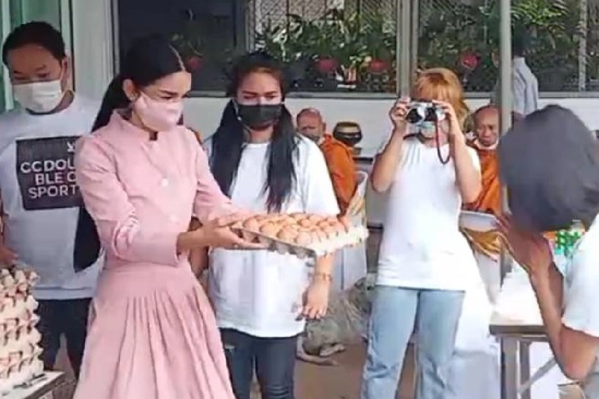 ที่จ.ปราจีนบุรี ผู้ผลิตเครื่องสำอางยี่ห้อหนึ่งในพื้นที่ อ.กบินทร์บุรี จ.ปราจีนบุรี ได้ทำบุญเลี้ยงเพลพระพร้อมทำทานแจกไข่ไก่ ชาวบ้านที่ทราบข่าวต่างมารับไข่ไก่ ราว200 คนมีการเข้าแถวตรวจวัดไข้จาก อสม.ในพื้นที่เพื่อป้องกันการแพร่ระบาดเชื้อไวรัสโควิด-19