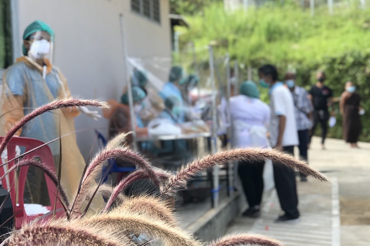 ที่บ้านชุมชนบ้านอิต่อง ต.ปิล๊อก อ.ทองผาภูมิ จ.กาญจนบุรี แหล่งท่องเที่ยวชื่อดัง เจ้าหน้าที่โรงพยาบาลทองผาภูมิ และเจ้าหน้าที่สาธารณสุขอำเภอทองผาภูมิ ได้ลงพื้นที่เก็บสารคัดหลั่งโพรงจมูกจากชาวบ้านที่อาศัยอยู่ภายในชุมชนจำนวน 289 คน เพื่อตรวจหาเชื้อโควิด-19 คาดว่าจะทราบผลในวันที่ 9พ.ค.64