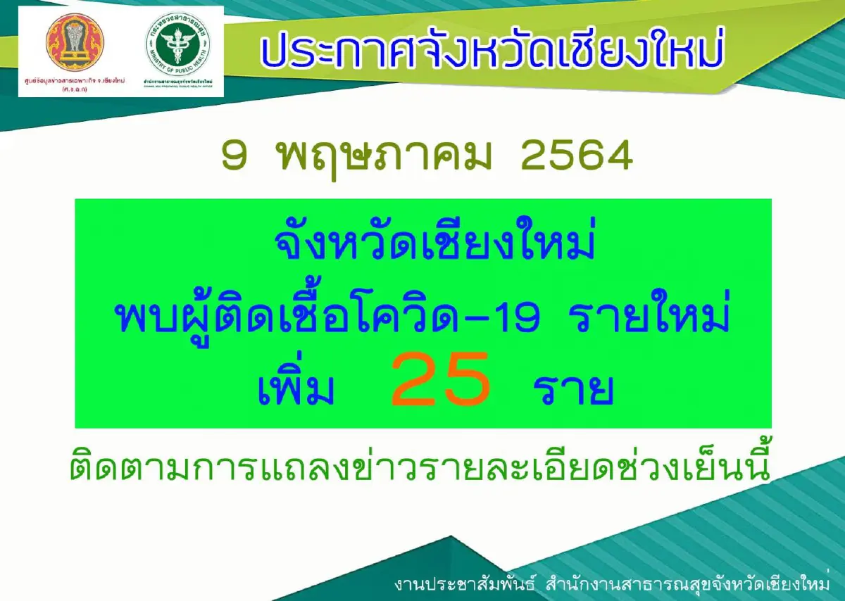 เชียงใหม่น่าห่วงพบติดเชื้อโควิดเพิ่ม 25 รายเสียชีวิตอีก 2 ศพ