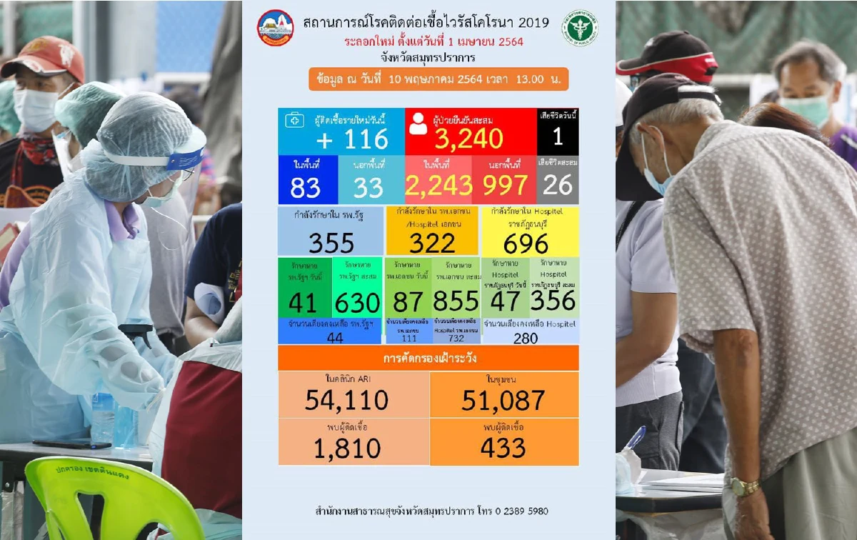 Update สถานการณ์ Covid-19 จังหวัดสมุทรปราการ ณ วันที่ 10 พฤษภาคม 2564 เวลา 13.00 น. พบผู้ป่วยรายใหม่ จำนวน 116...