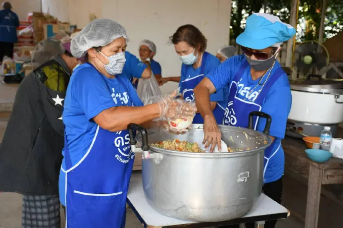 เปิดครัวสนามรักสัตหีบนำอาหารปรุงสำเร็จแจกเหยื่อโควิด-19