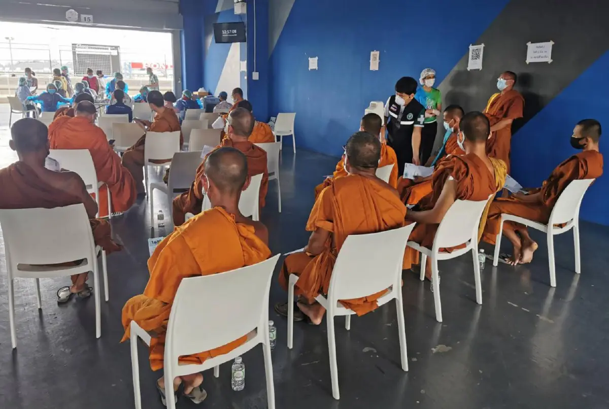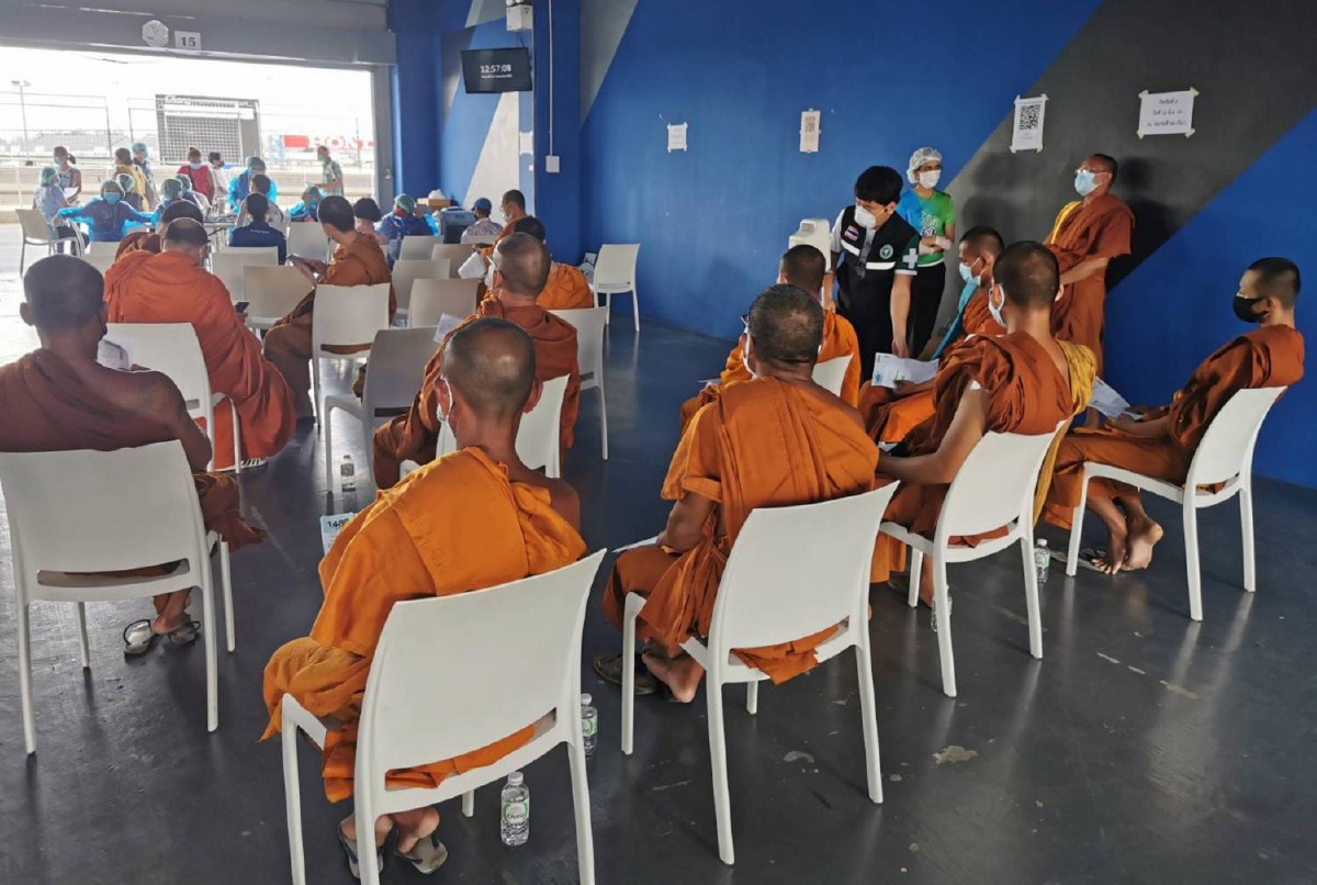 พระสงฆ์-ชาวบุรีรัมย์รอฉีดวัคซีนโควิดแน่นสนามช้างฯ