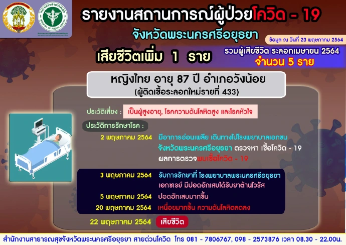อยุธยาติดโควิดเพิ่ม21รายตายอีก1ศพเร่งตรวจเชิงรุกแคมป์คนงาน