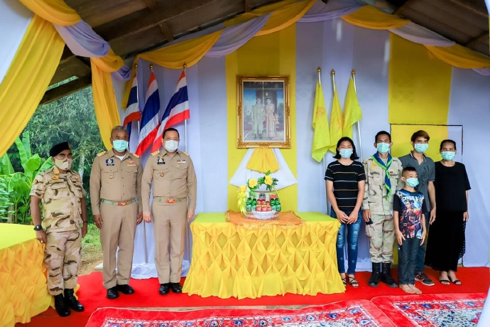 นราธิวาส-ในหลวง พระราชินีโปรดเกล้าฯผู้ว่าฯนราธิวาสนำตระกร้าสิ่งของพระราชทานมอบแก่ญาติ อส.ทพ.เสียชีวิตถูกคนร้ายซุ่มยิง