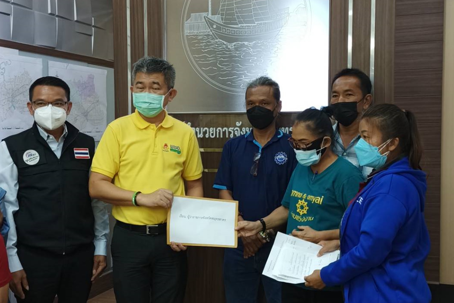 เมื่อวันที่ 1ก.ค.64 ที่ศาลากลางจังหวัดสมุทรสาคร ลูกจ้างบริษัทบริษัทไทยการ์เม้น เอ็กซปอร์ต อ.อ้อมน้อย จ.สมุทรสาครและผู้แทนกลุ่มสหภาพแรงงานย่านอ้อมน้อย-อ้อมใหญ่ กว่า 10 คน ได้เดินทางเข้ายื่นหนังสือถึงผู้ว่าฯ เพื่อเสนอแนะในการแก้ไขปัญหาการระบาดของไวรัสโควิดในสถานประกอบการ