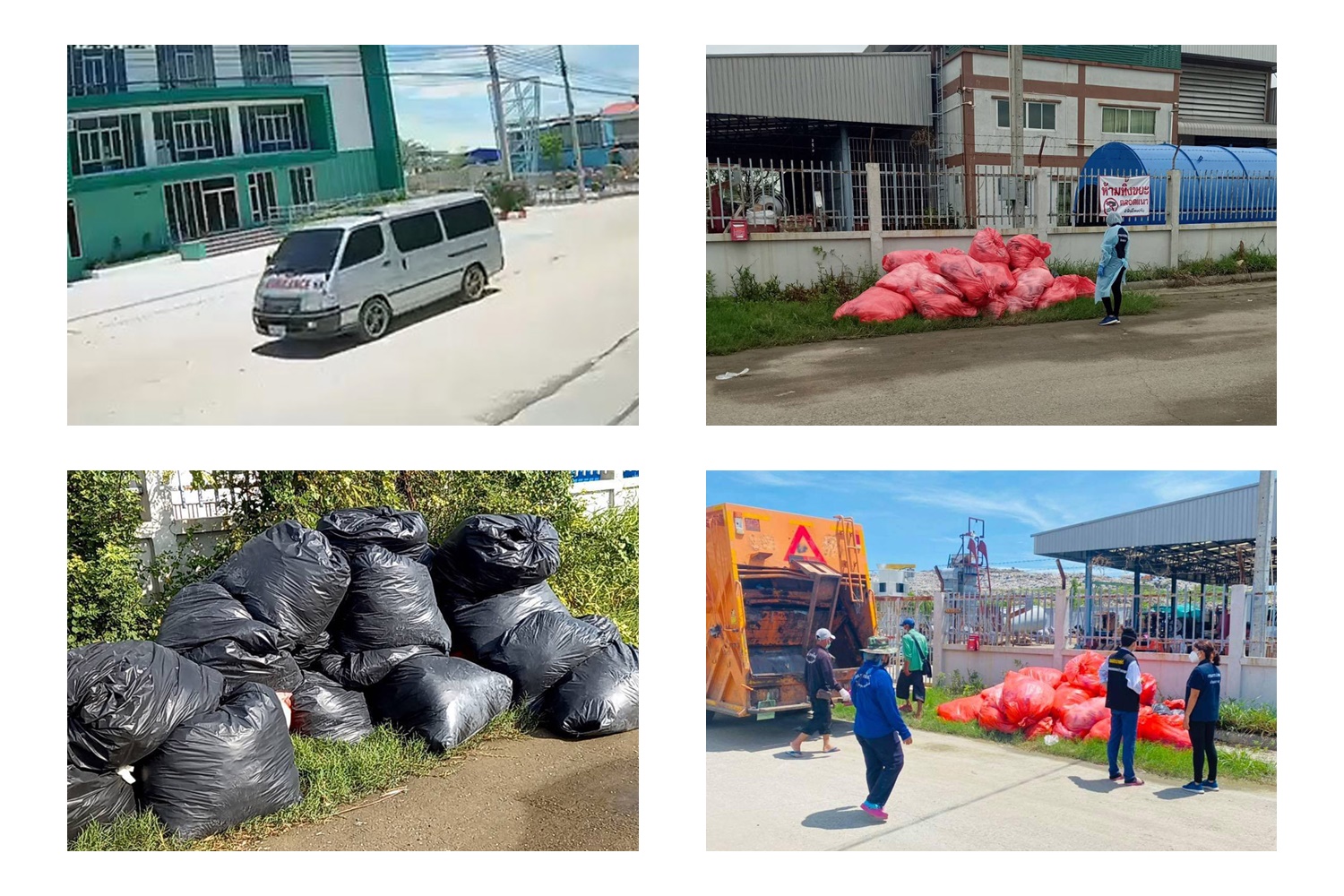 รถตู้ติดไฟไซเรนลอบขนขยะติดเชื้อโควิดทิ้งข้างโรงงาน