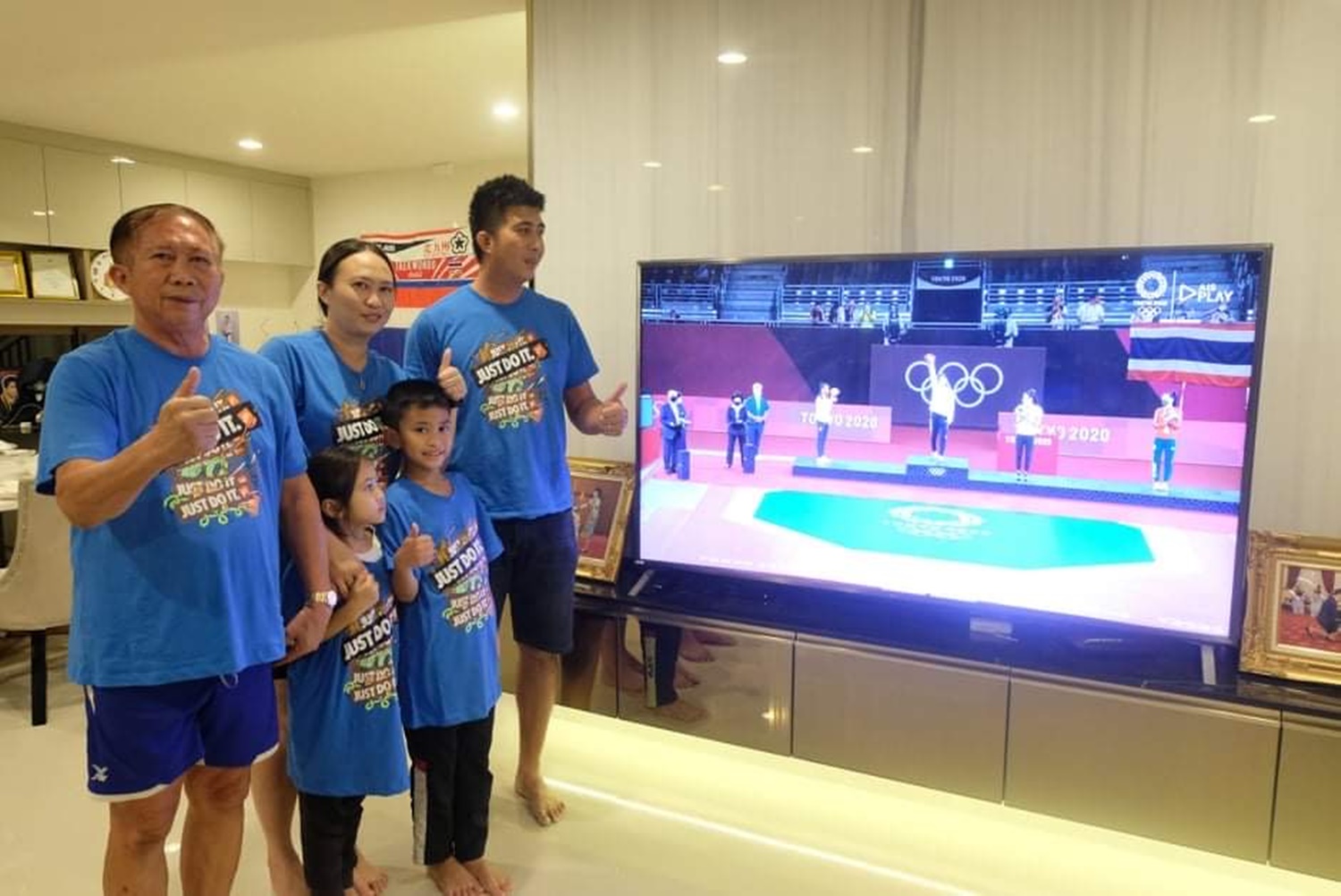 ขณะที่ครอบครัวและญาติของน้องเทนนิสที่ได้ร่วมเชียร์ต่างก็แสดงความยินดีที่ น้องเทนนิสสามารถเอาชนะคู่ต่อสู้คว้าเหรียญทองโอลิมปิกมาครองได้สำเร็จ