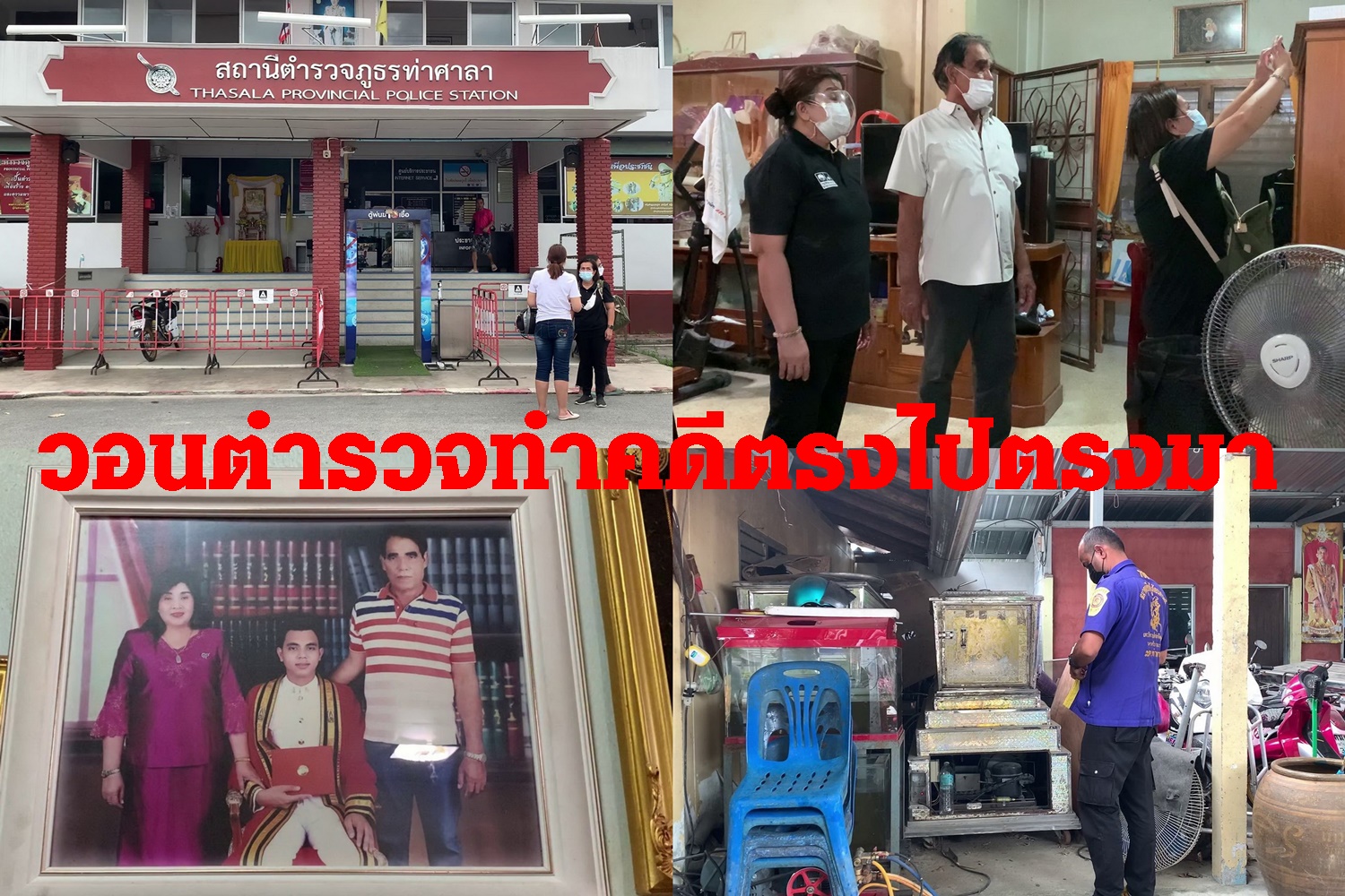 ด้าน พ.ต.อ.อนันต์ หริกจันทร์ ผกก.สภ.ท่าศาลา เปิดเผยทางโทรศัพท์เพิ่มเติมว่า กำลังรวบรวมพยานหลักฐานเพื่อออกหมายจับกุมคนร้าย และมีการติดต่อมาว่าจะมีการมามอบตัวแต่ก็ยังไม่มาแต่อย่างใด.