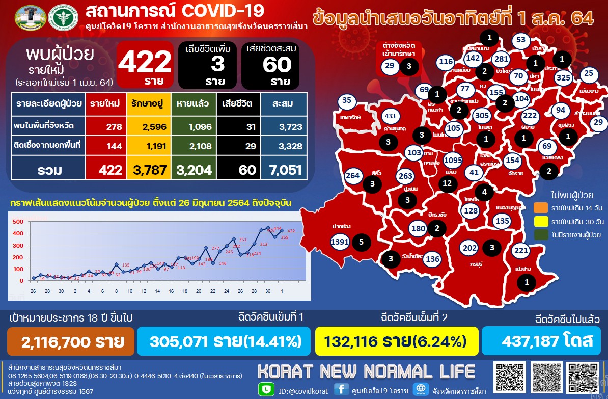 โคราชพบติดโควิดเพิ่ม422รายตาย3ศพส่วนใหญ่มาจากพื้นที่เสี่ยง