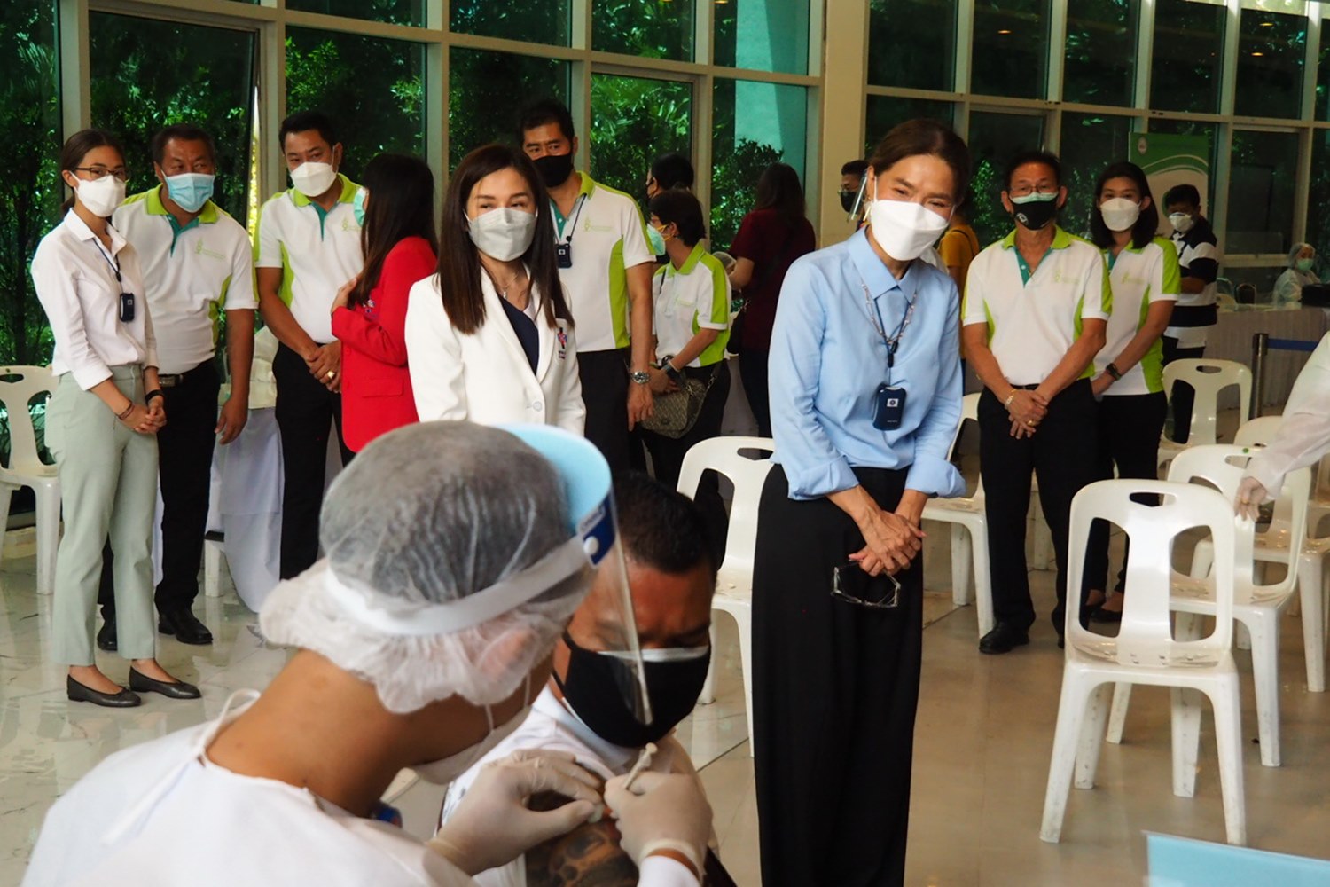 อย่างไรก็ตาม เริ่มดำเนินการฉีดวัคซีนในวันที่ 9 สิงหาคม เป็นต้นไป และได้มีการแจ้งวันนัดฉีดวัคซีน ผ่านทางSMS หรือทางโทรศัพท์ตามที่ผู้ลงทะเบียนได้ระบุไว้ โดยจะกำหนดเป็นช่วงเวลาให้ห่างกันช่วงละ 150 คน เพื่อให้ผู้ที่ได้รับการฉีดวัคซีนมาตามเวลาที่กำหนด เพื่อลดความแออัดตั้งแต่เวลา 08.00-16.00 น.และหลังจากที่ได้ลงพื้นที่ตรวจเยี่ยมในวันนี้พบว่า ประชาชนมาตามเวลาที่กำหนดไว้ ทำให้มีผู้เข้ารับการฉีดวัคซีนไม่หนาแน่นจนเกินไป
