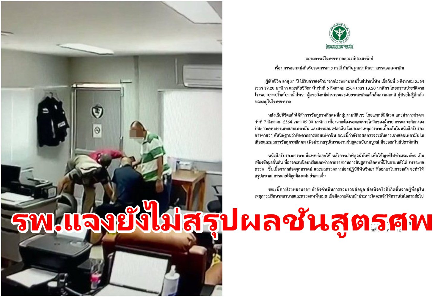 เมื่อวันที่ 25 ส.ค. 64 โรงพยาบาลสวรรค์ประชารักษ์ ได้ออกแถลงการณ์ เรื่องการออกหนังสือรับรองการตาย กรณี สันนิษฐานว่าพิษจากสารแอมเฟตามีน โดยมีเนื้อหาดังนี้