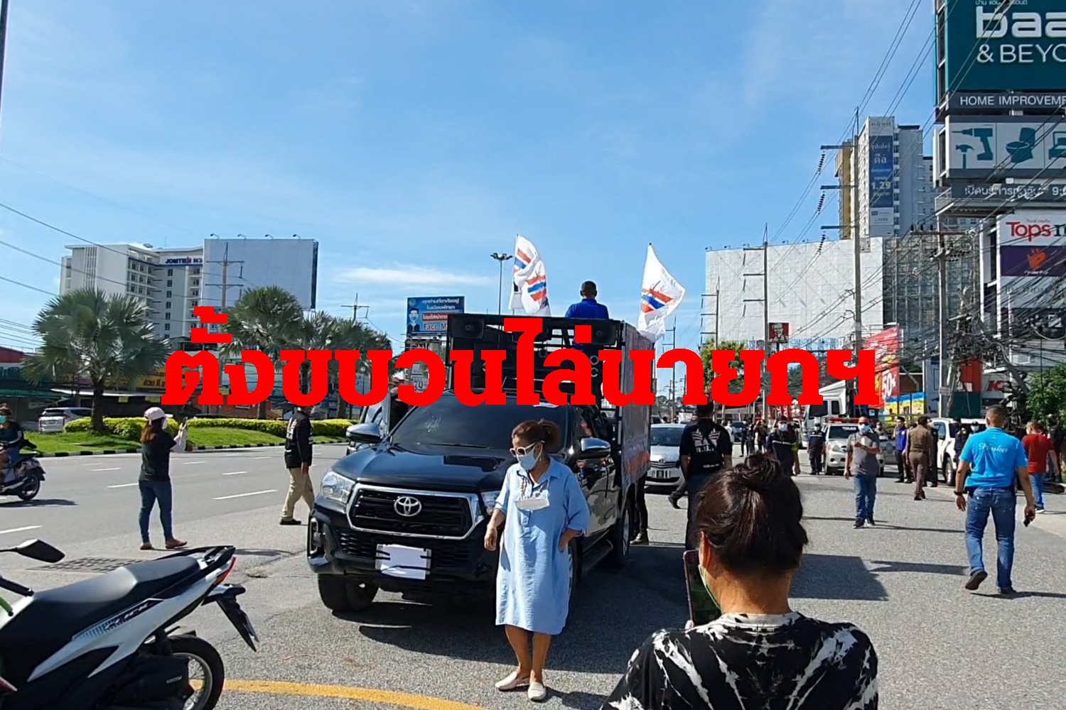 คาร์ม็อบพัทยาตั้งขบวนไล่นายกฯประยุทธ์ให้ลาออก