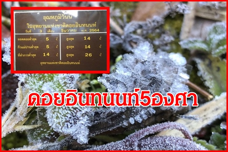 เมื่อวันที่ 3 ธ.ค. 64 บรรยากาศ?เช้าวันนี้ที่ยอดดอยอินทนนท์? อุทยานแห่งชาติดอยอินทนนท์ อำเภอจอมทอง จังหวัดเชียงใหม่ เจ้าหน้าที่อุทยานได้นำภาพและคลิป เกิดปรากฎการณ์น้ำค้างแข็งหรือ เหมยขาบ ที่เกิดขึ้นอีกระลอกเป็นครั้งที่4ของฤดูหนาวปีนี้บริเวณ?ยอดดอย หน่วยพิทักษ์?อุทยาน?และจุดชมวิวกิ่วแม่ปาน? กม.45? หลังมีอุณหภูมิลดต่ำ 5 องศาเซลเซียส ที่ทำการอุทยานแห่งชาติดอยอิทนนท์ กม. 31 วัดได้ 14 องศาเซลเซียส หลังจากอากาศได้หนาวเย็นอีกระลอก นักท่องเที่ยว?ที่ขึ้นไป? 1,708 คนในจำนวนนี้มีชาวต่างชาติ? 106 คน? ต่างเก็บภาพความประทับใจ?ของธรรมชาติเหมยขาบบนยอดดอย?ท่ามกลางทะเลหมอกที่สวยงามและแสงแรกของวันบนยอดดอยสูงที่สุดของประเทศ?ไทยอีกครั้งอย่างไม่ผิดหวังทั้งที่จองไว้ล่วงหน้าและวอล์คอิน? ซึ่งมีการตรวจวัดคัดกรองตามมาตรการเฝ้าระวัง?โรค?โค?วิด?-19? ของกระทรวงสาธารณ?สุขและท่องเที่ยวแบบวิถีใหม่? New? Normal?