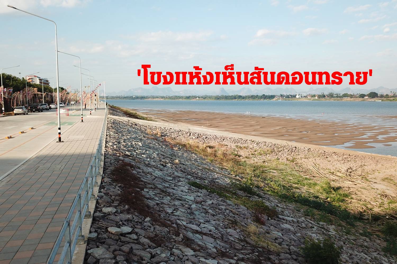 แม่น้ำโขงวิกฤตแล้งแห้งเห็นสันดอนทราย
