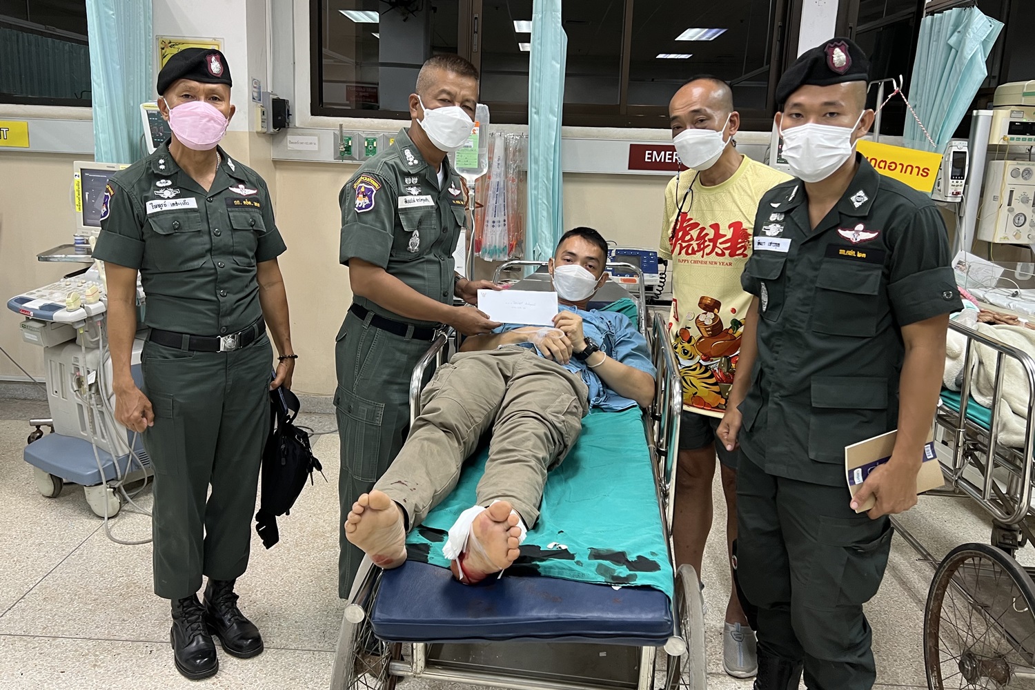 ด้าน พ.ต.อ.สิปปนันท์ สรณ์คุณแก้ว ผกก.ตชด.23 พร้อมด้วย พ.ต.ต.พัฒนา เสาวกุล ผบ.ร้อย ตชด.235และเจ้าหน้าที่เกี่ยวข้องเข้าเยี่ยมอาการของ ส.ต.อ.เฉลิมพร รถเชษฐา อายุ 34 ปี ผบ.หมู่ กก.ตชด.23 ปฏิบัติหน้าที่ชุดปฏิบัติการข่าว ตชด.235 ถูกกระสุนปืนยิงเข้าที่เท้าซ้าย 1 นัด ซึ่งยังรักษาตัวอยู่ที่โรงพยาบาลนครพนม แต่อาการปลอดภัยแล้ว ยังต้องอยู่ในช่วงฟักฟื้น พร้อมมอบเงินเป็นขวัญกำลังใจและกำชับให้เจ้าหน้าที่ ตชด.ทุกนาย ปฏิบัติหน้าที่ด้วยความเข้มงวด และอยู่ภายใต้ความปลอดภัย รวมถึงเร่งขยายผลเพิ่มมาตรการเข้ม สกัดกั้นปราบปรามจับกุมขบวนการยาเสพติดต่อเนื่อง เพราะมีการลักลอบเข้ามาจากประเทศเพื่อนบ้านมากขึ้น อีกทั้งยังต้องเพิ่มความระมัดระวัง เนื่องจากแก๊งค้ายาเสพติดส่วนใหญ่มีการติดอาวุธพร้อมต่อสู้เจ้าหน้าที่.